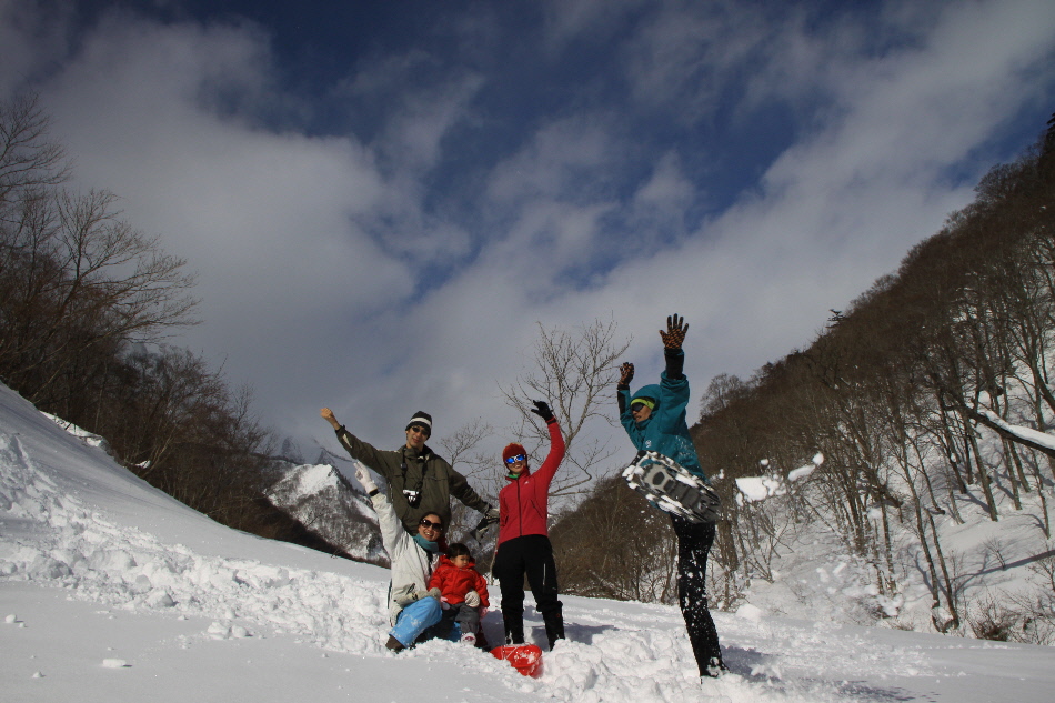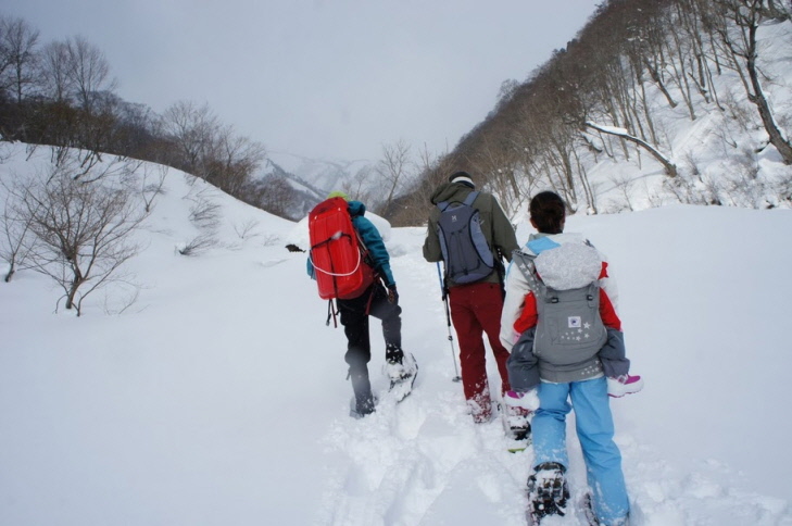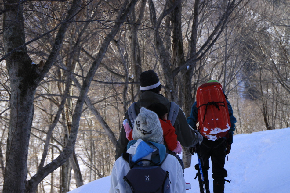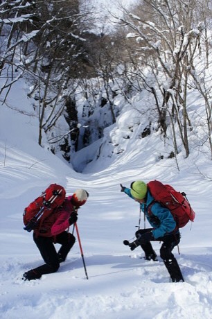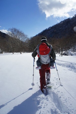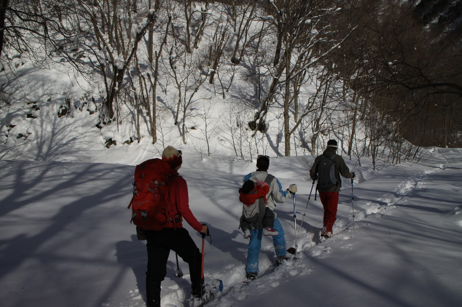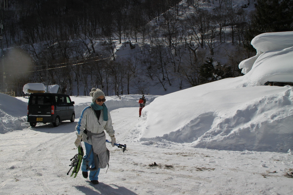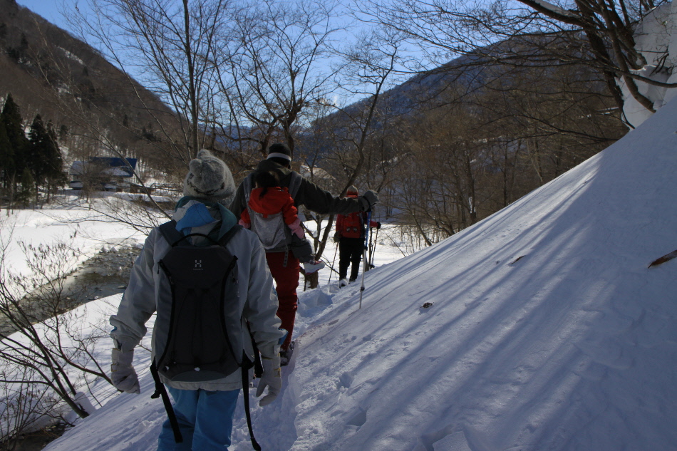 1日目のお楽しみはスノーハイキング in 一の倉沢(?)