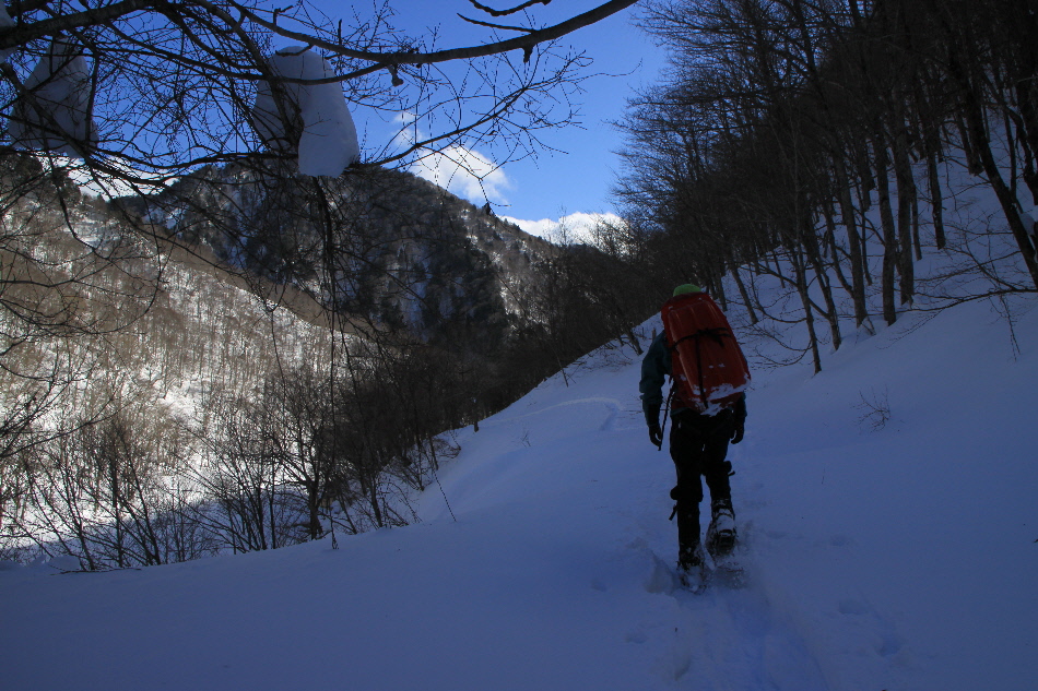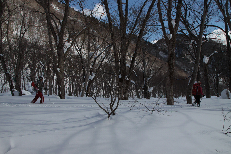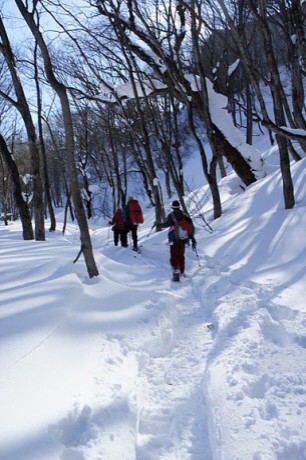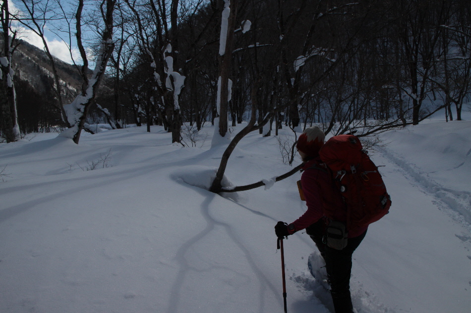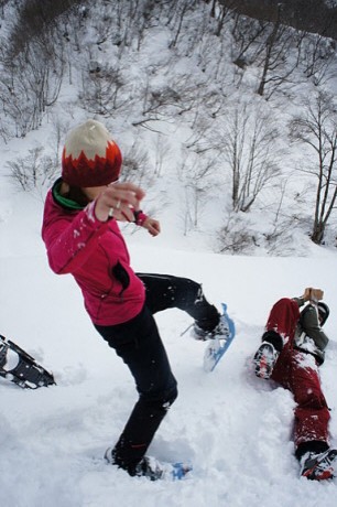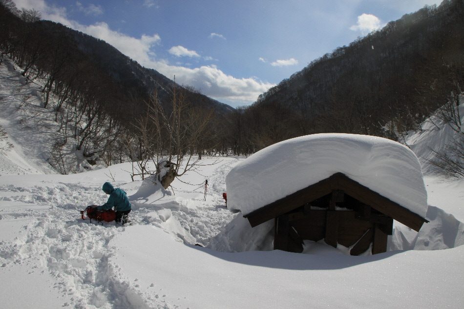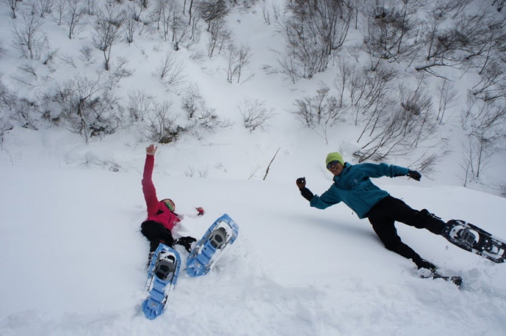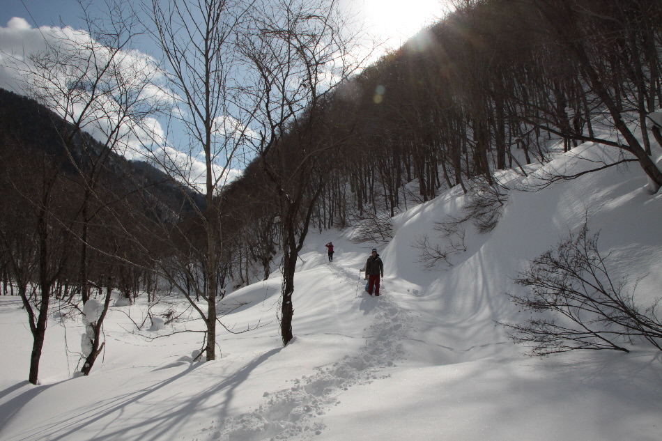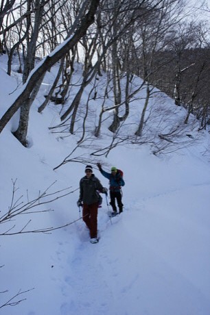 1日目のお楽しみはスノーハイキング in 一の倉沢(?)