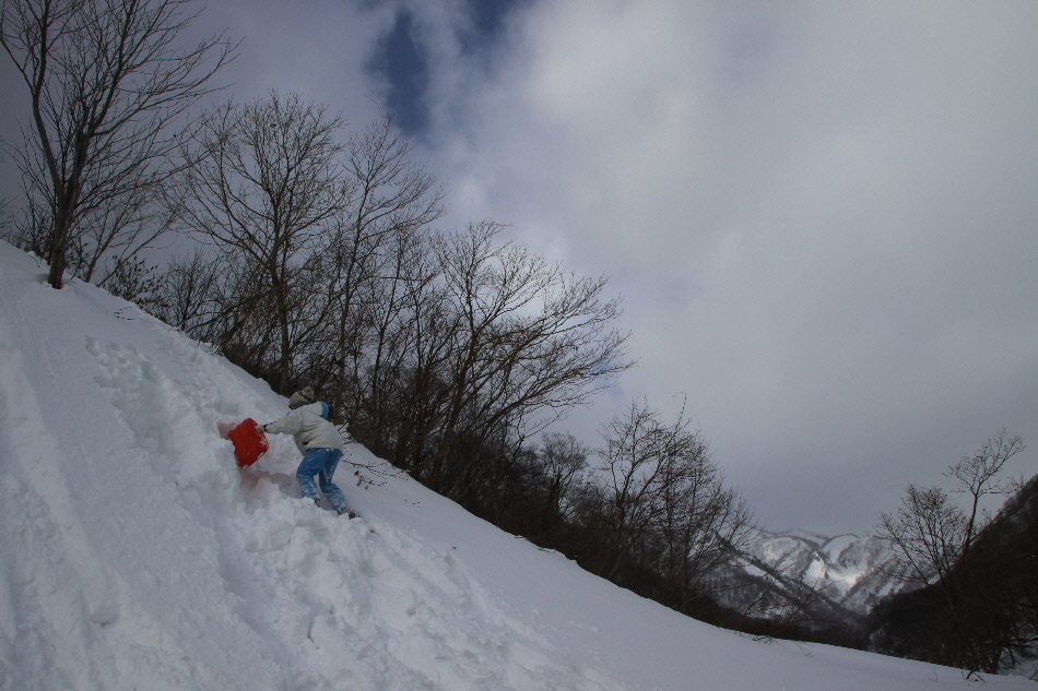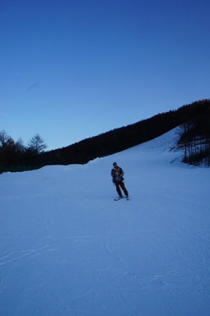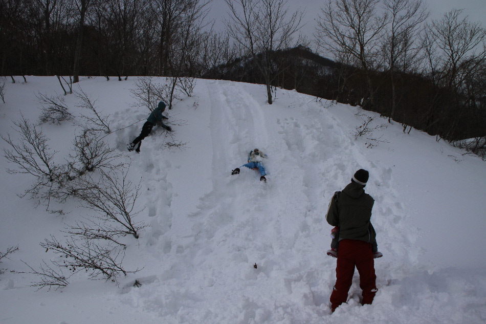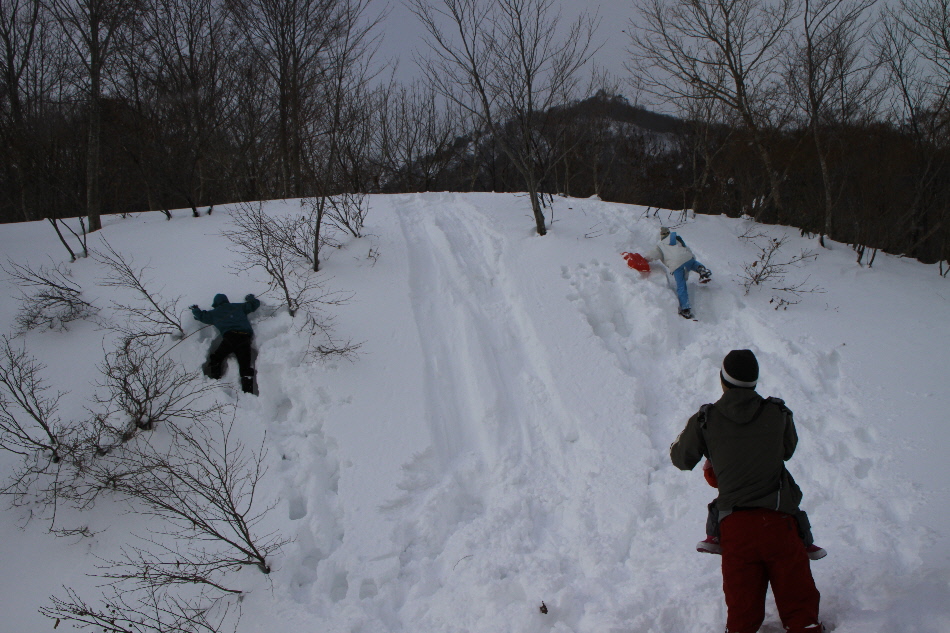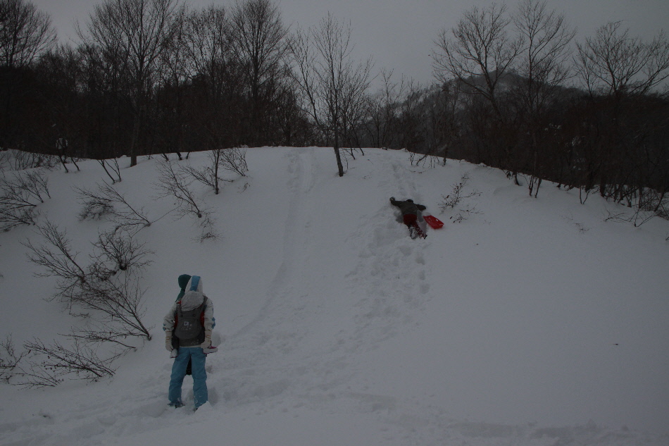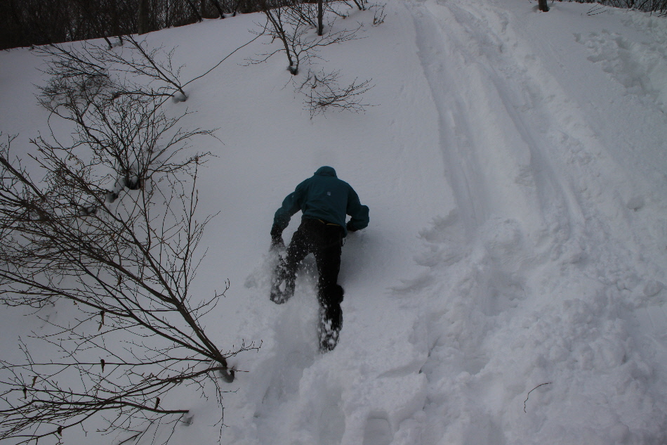 見た目よりもかなり急斜面で四苦八苦してた相方クン そして滑ります