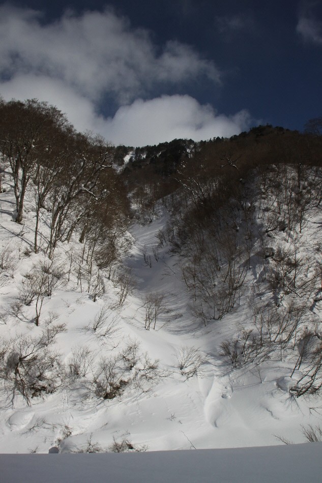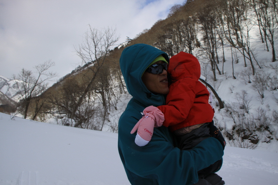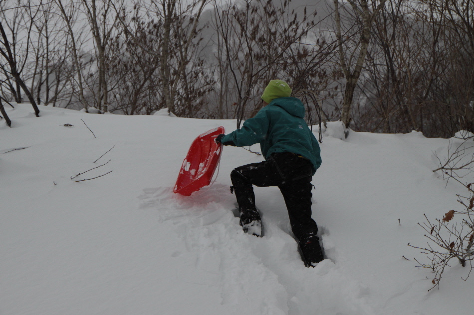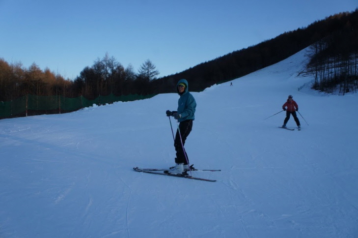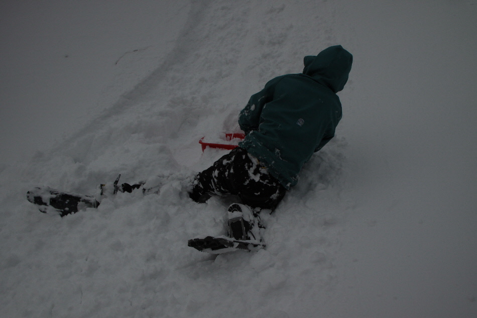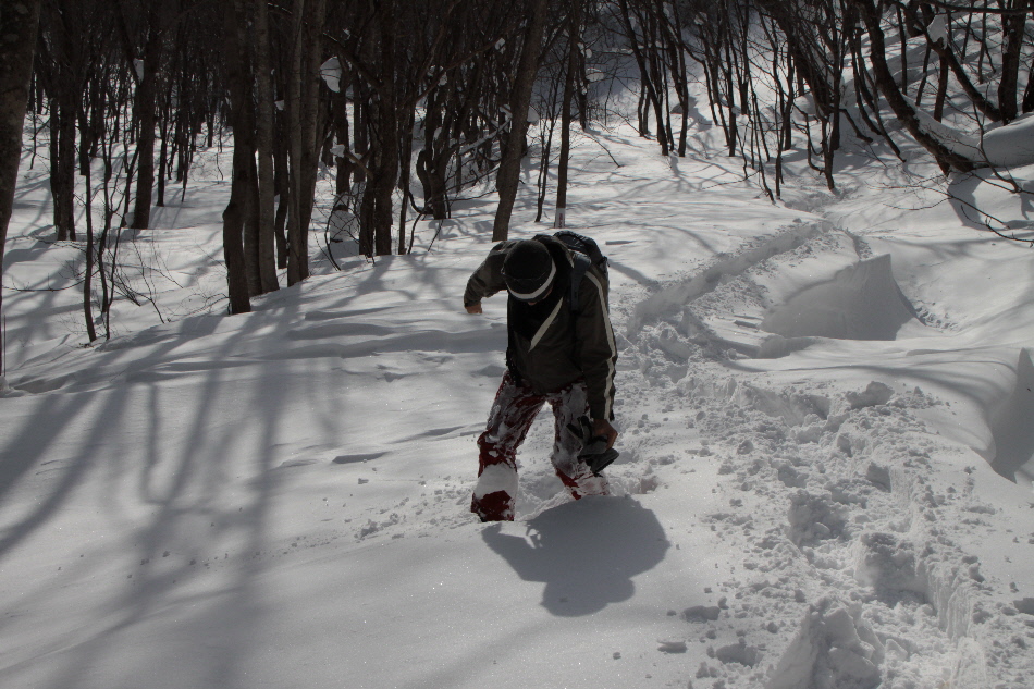 見た目よりもかなり急斜面で四苦八苦してた相方クン そして滑ります