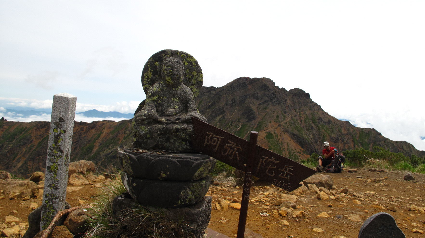 中岳を下り、最後、阿弥陀の山頂までの登りをガンバルのみ=3