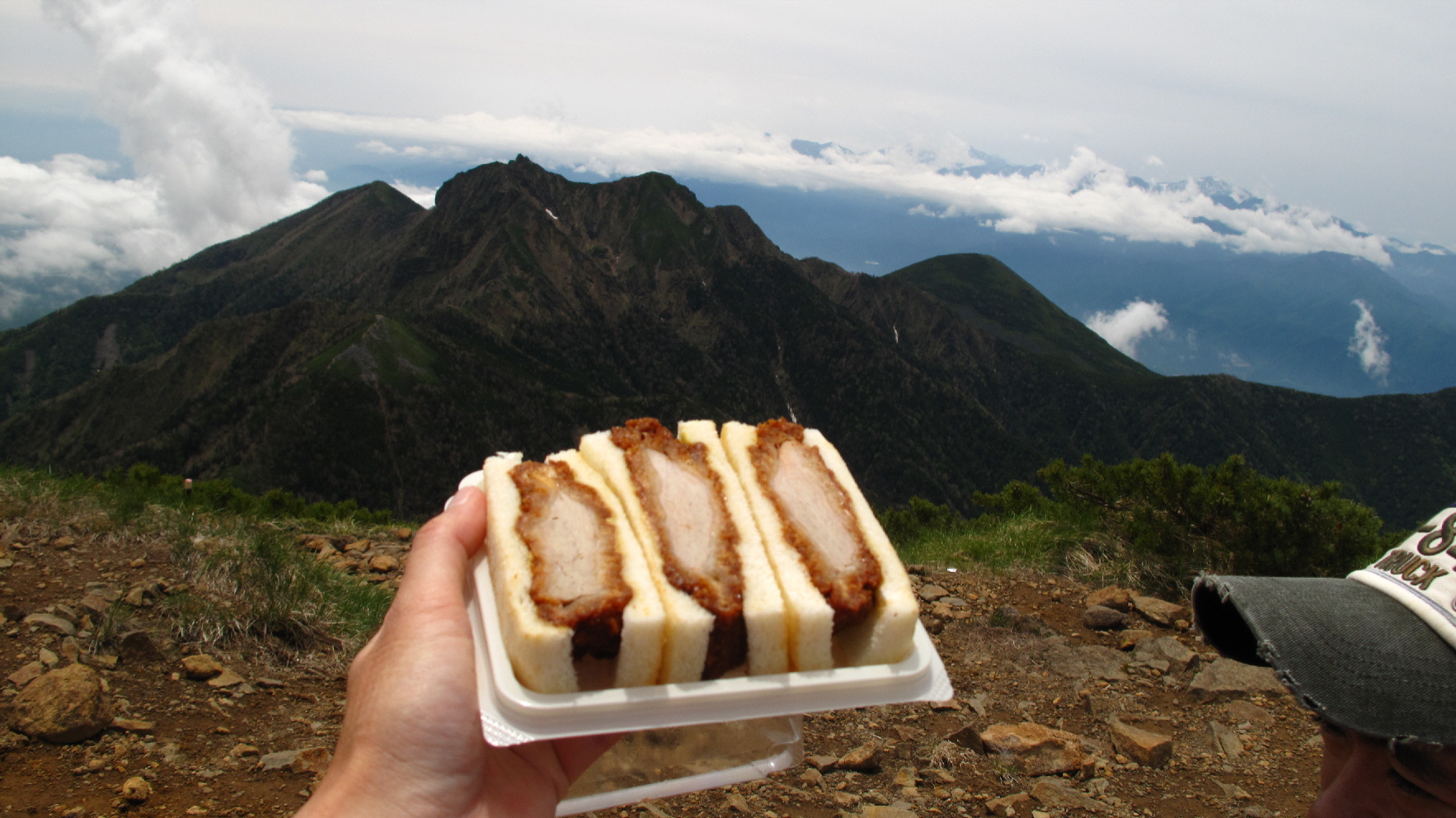 権現岳を眺めながら、今日の第二弾のサンドウィッチ”かつサンド”を食べよう