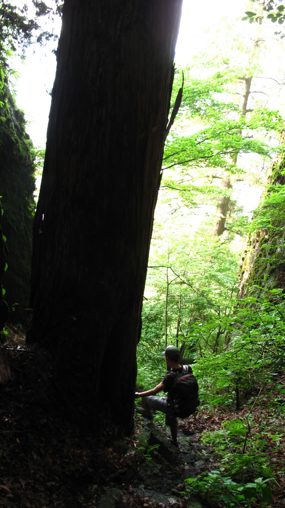 長い下りだけど、奥の院を登った時みたいに岩が濡れていないので、まだ下りやすいかな!