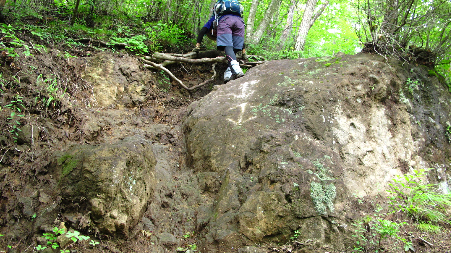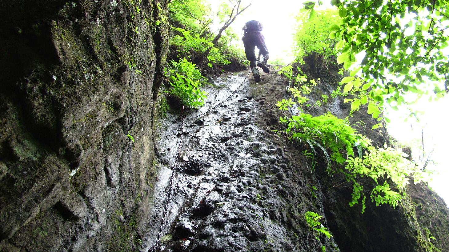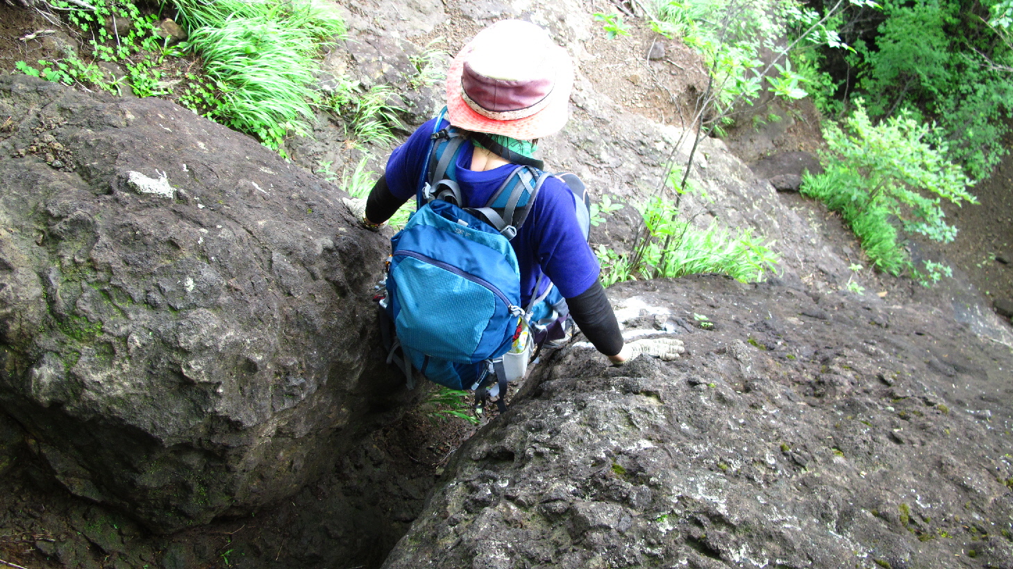 昨日の夜に雨が降ったみたいで、岩場が濡れてます 十分に気を付けてユックリ登って行こう