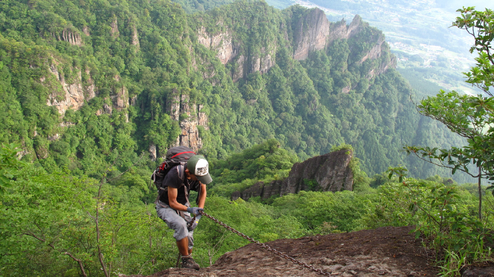 あそこを登って行くのか~ 難所と言われるちょっと長めの岩場&クサリ場を登る奥の院