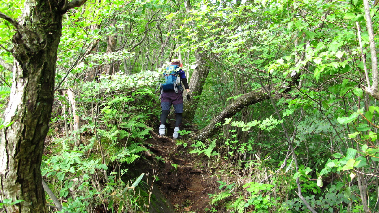 今日は、相馬岳まで行き、堀切分岐で中間道に下りることにします