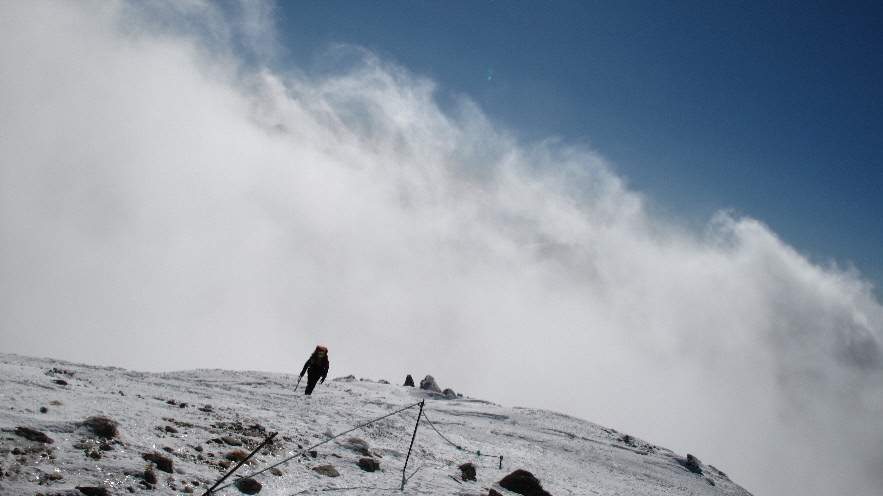 ちょっとガスが・・・ 山頂に着くまでこれ以上でないでおくれ~