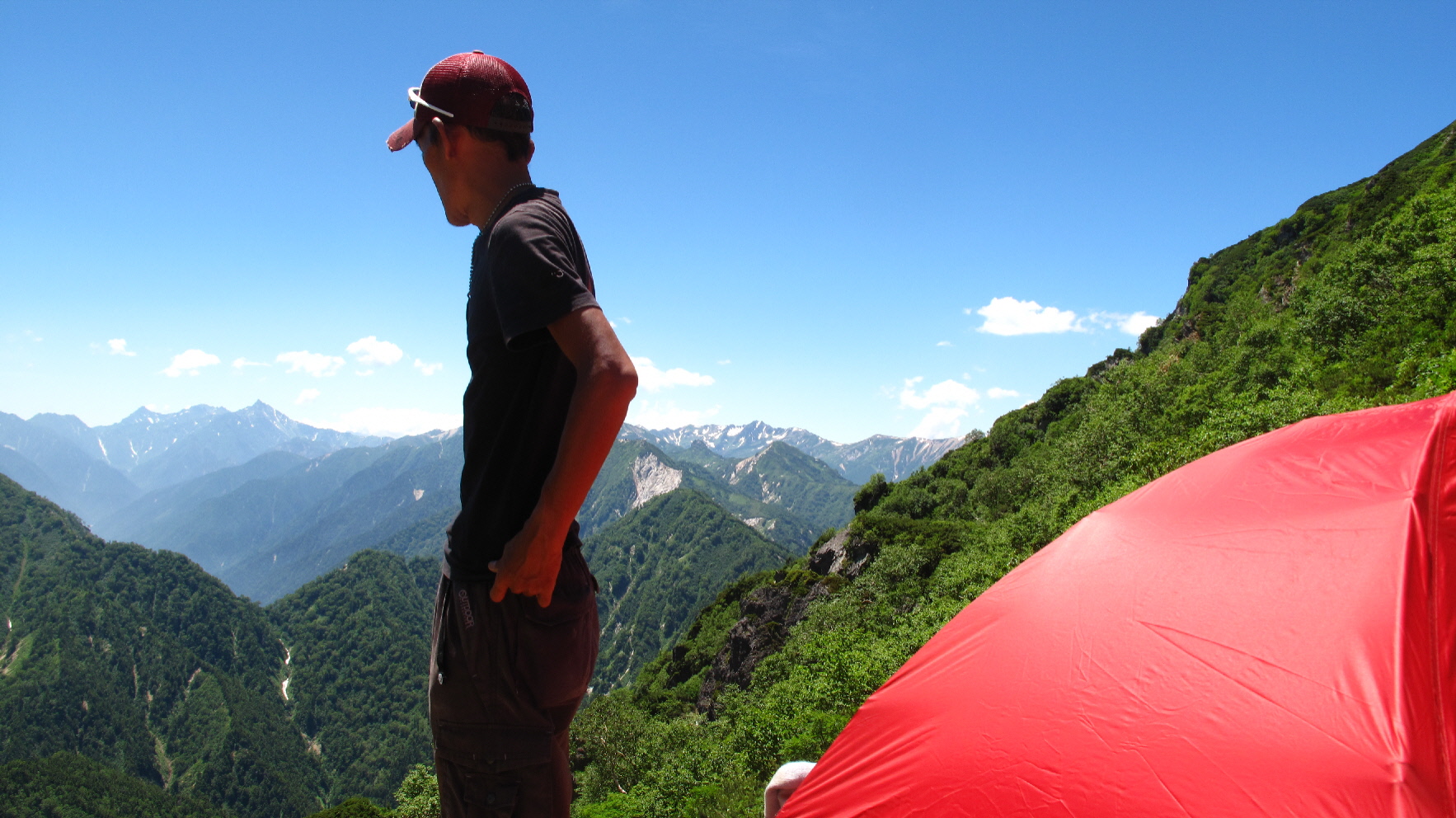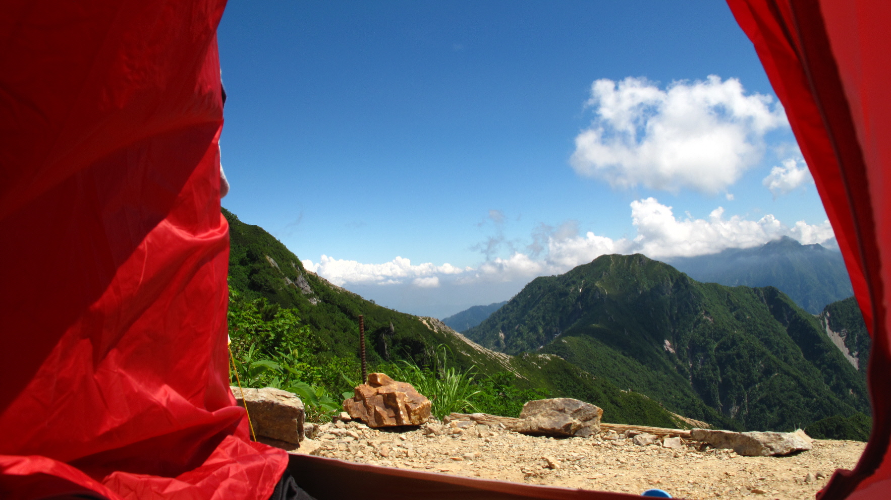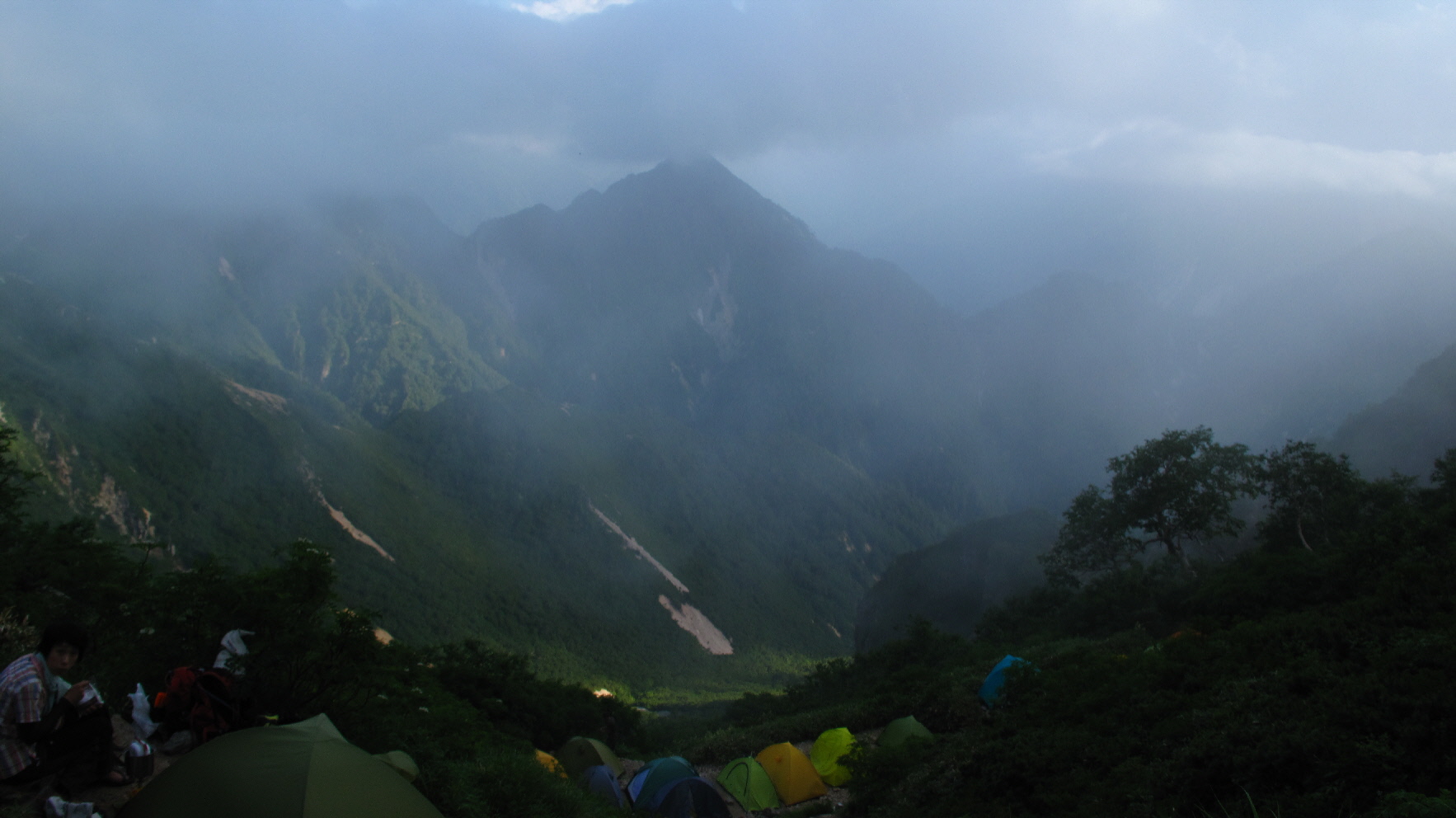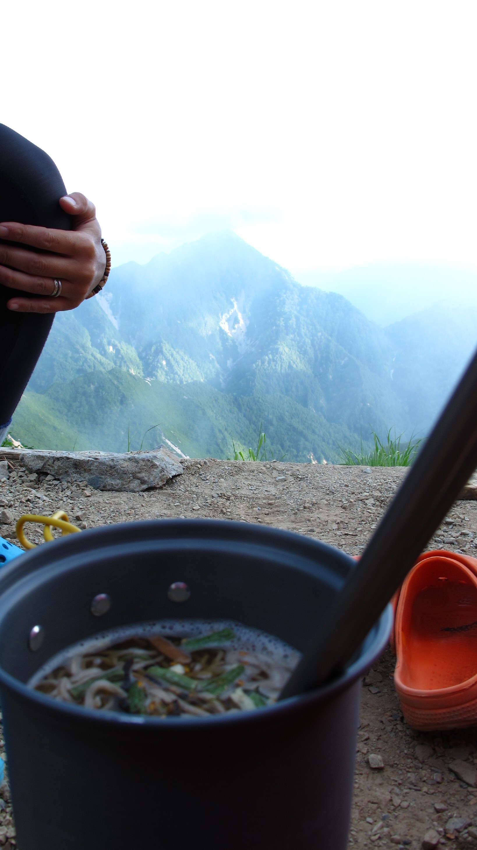 テントを張ることになり、ココのテン場と通り過ぎて、テント担いで登って行く人がたくさんいましたね