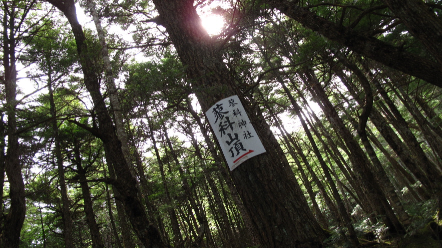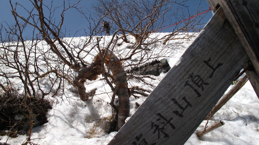 傾いてた蓼科山頂上の看板・・・何度も見てきたけど、これが最後かな?笑