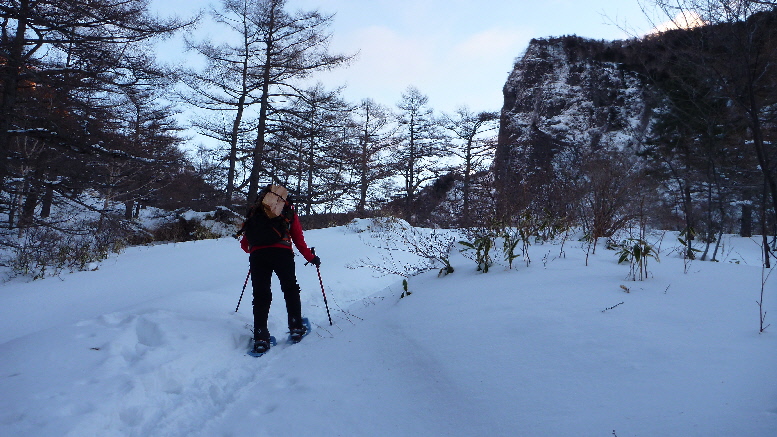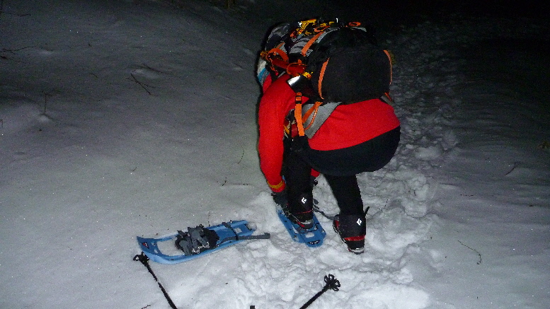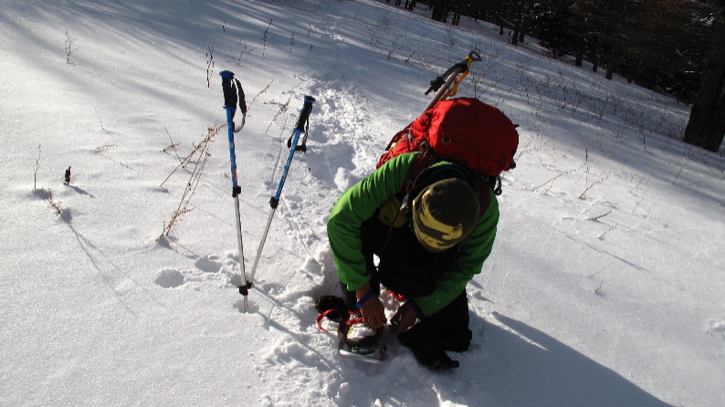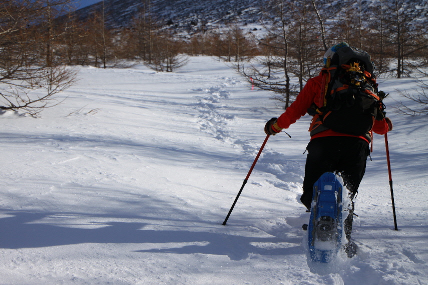 出発で~す わたくし早速スノーシュー装着
