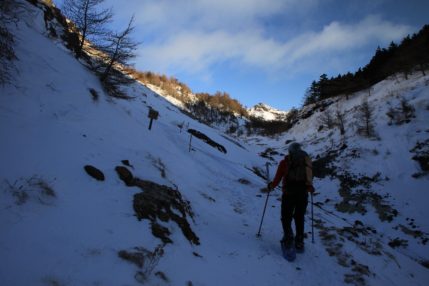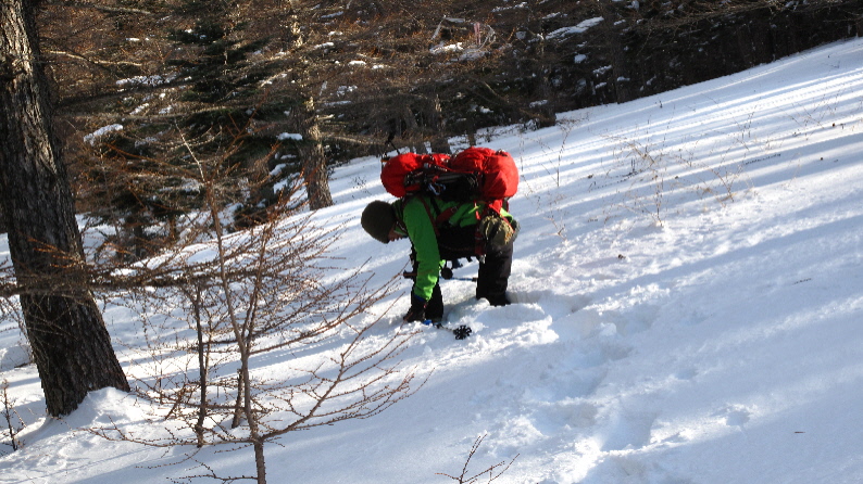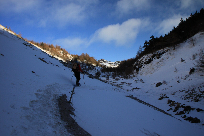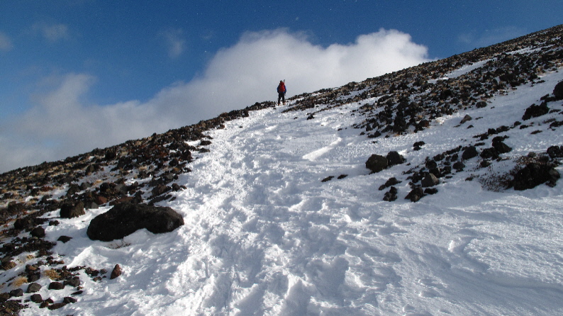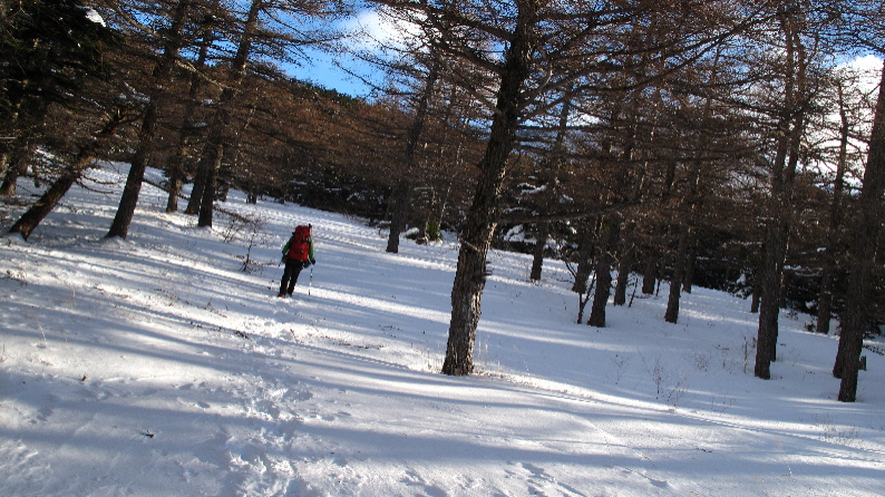 このあたりから、ちょっと雪深くなってきて