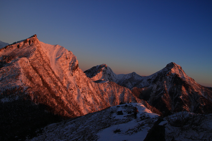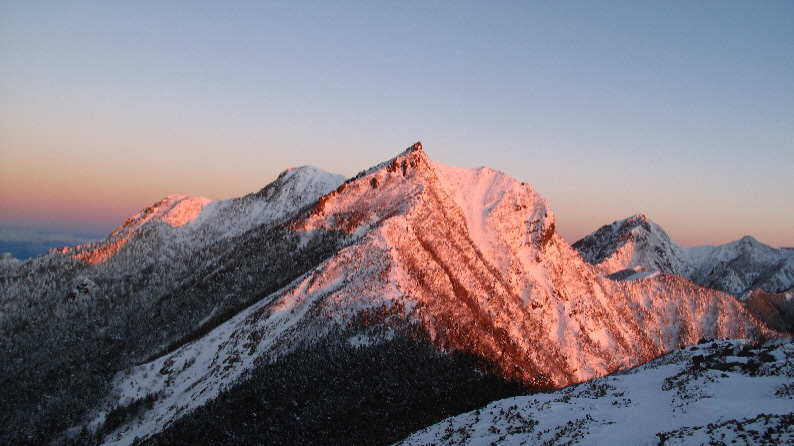 権現岳に日が当たりはじめました