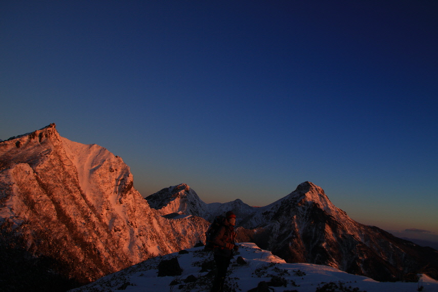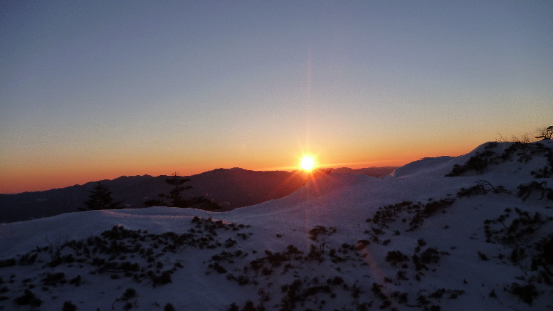 じゃ~ん、三ツ頭到着 何とか日の出に間に合いました
