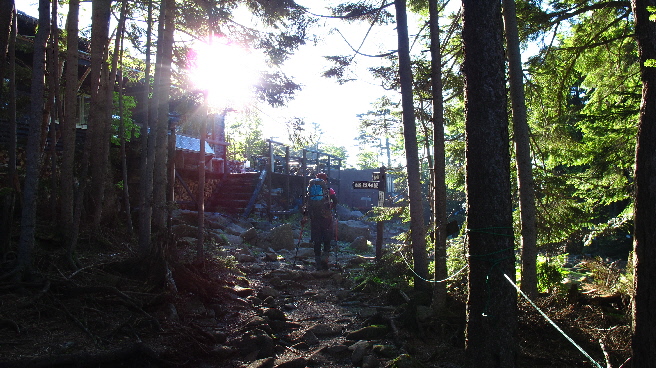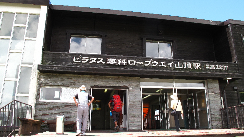 縞枯山荘の前を通り、ロープーウェイ乗り場方向へ歩きます