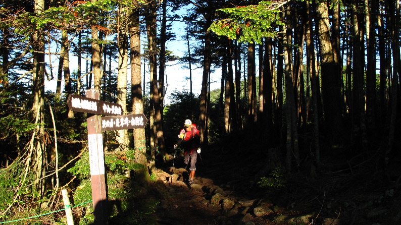 五辻への分岐 あと少し頑張って登れば縞枯山です