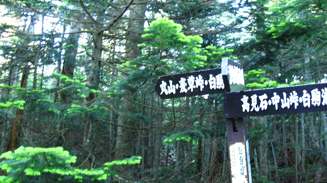 黒百合ヒュッテのテンバから少し歩くと、直ぐに中山峠の分岐です