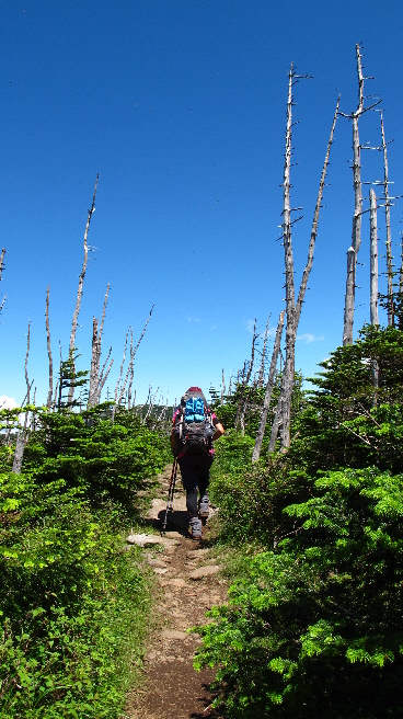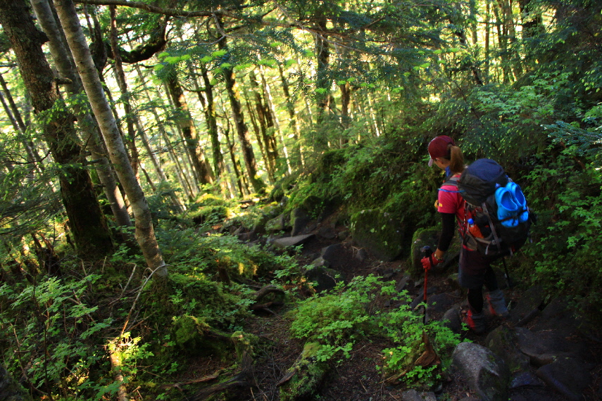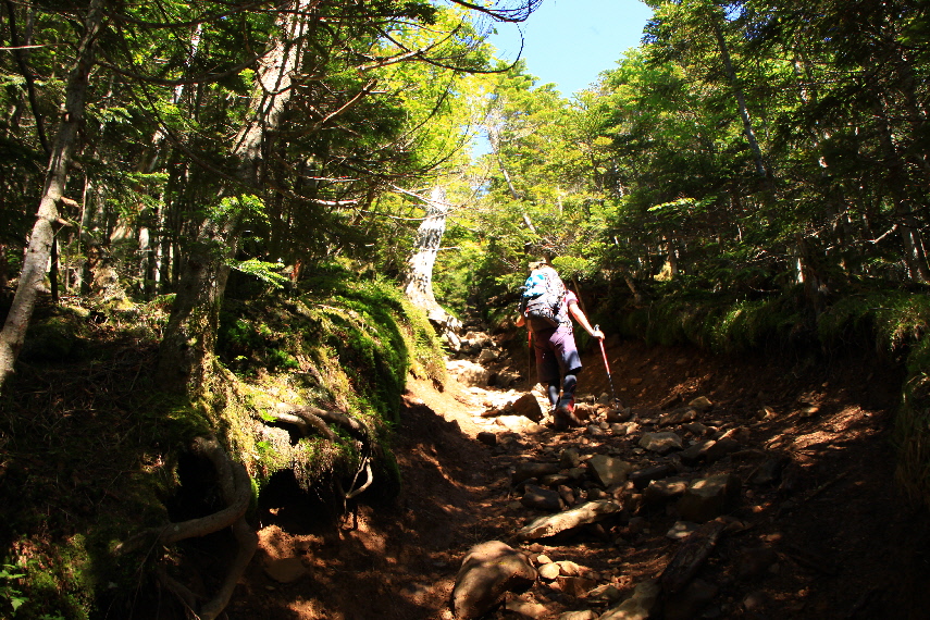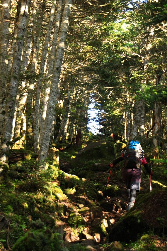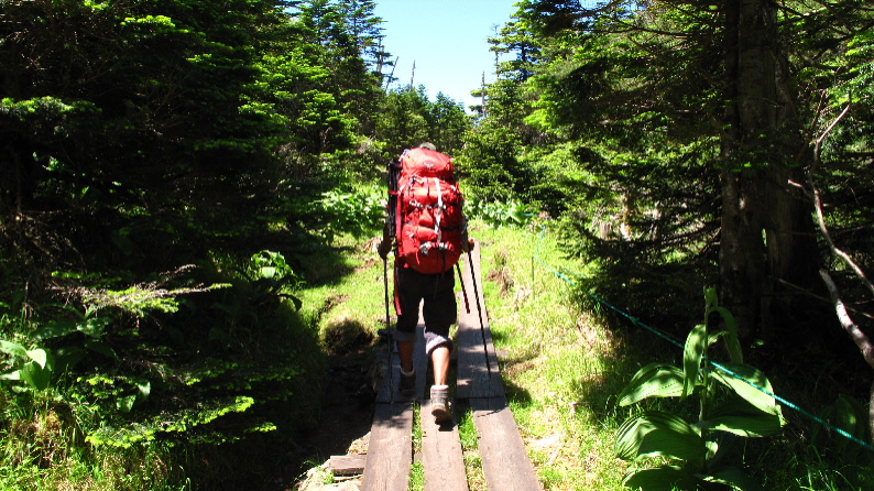 黒百合ヒュッテから麦草峠までの道は初めて歩きます