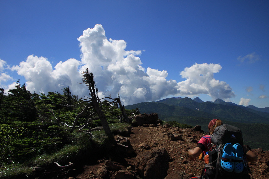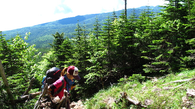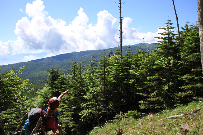 さぁ、茶臼岳から下って登って縞枯山に向かいます