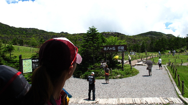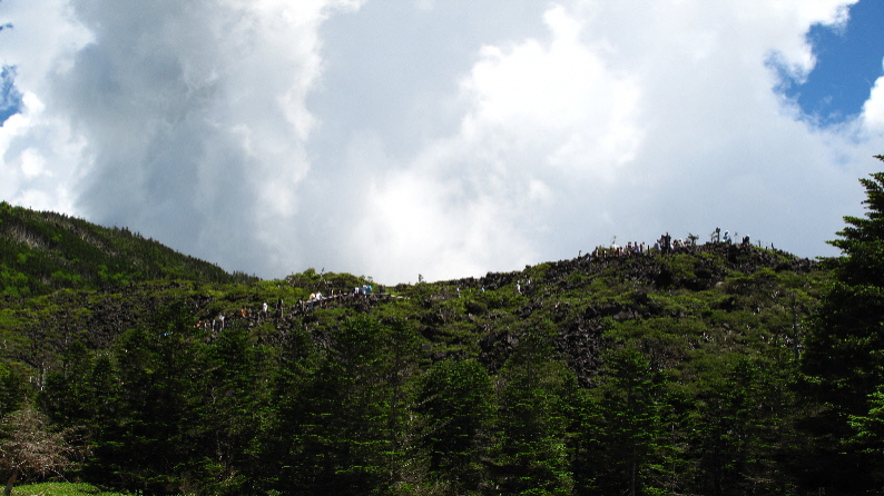 坪庭への散策の人と、北横岳へ登る団体の人人人