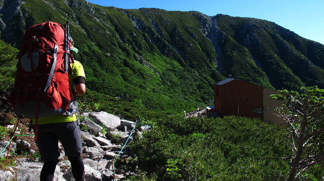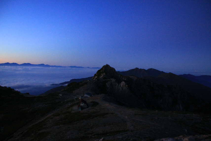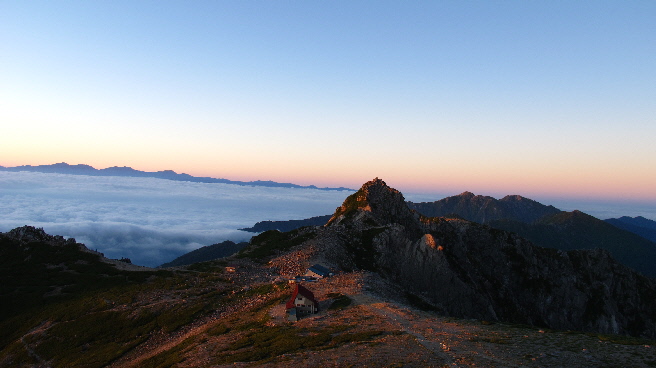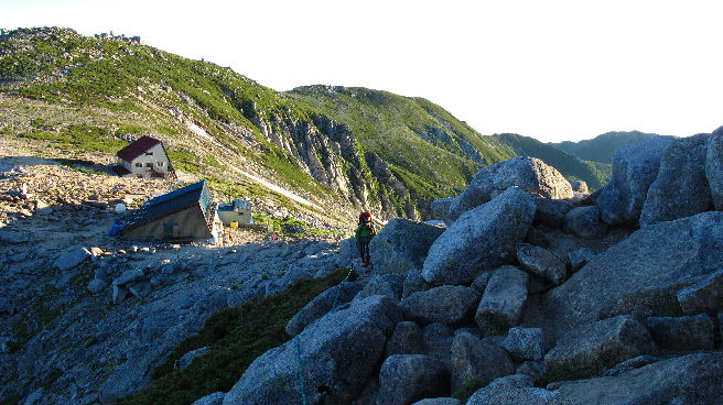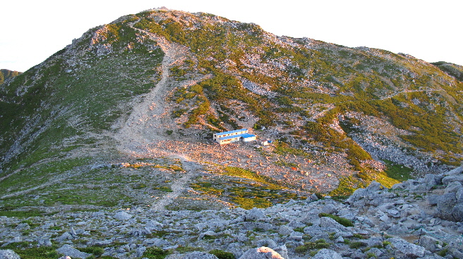 明るくなってきて木曽駒と頂上山荘が良く見えてきました