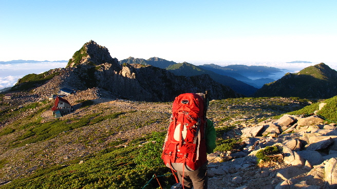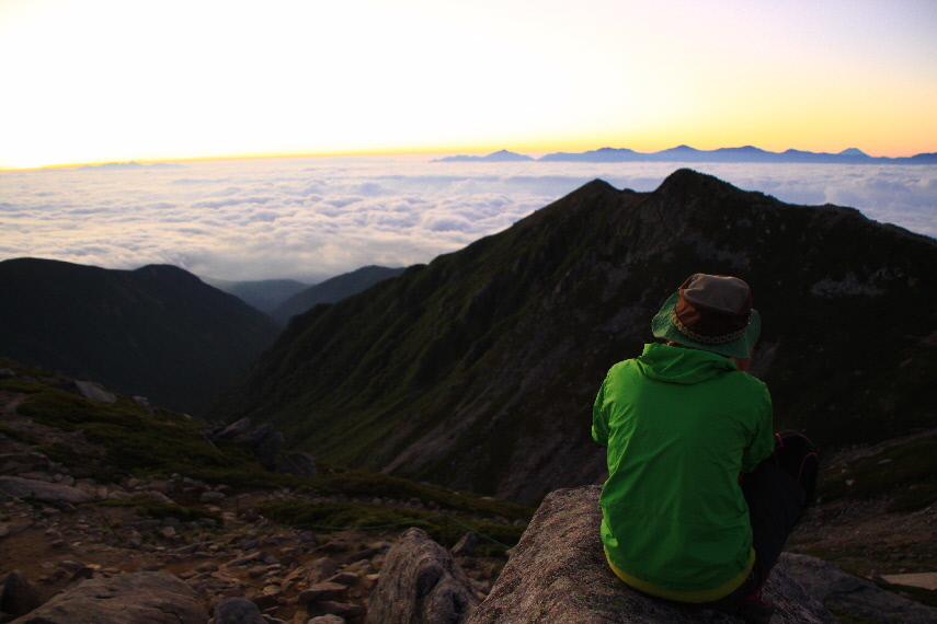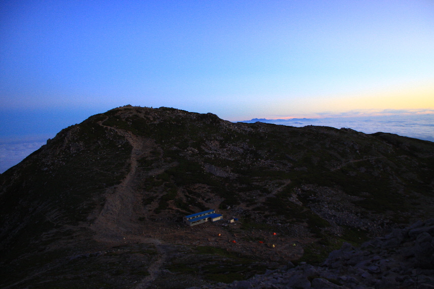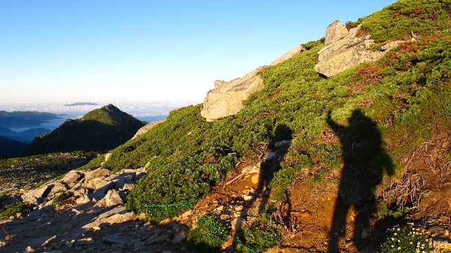 テント撤収&荷物を片づけて、朝日を見る為に中岳へ登ります