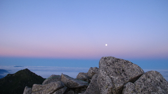 もう間もなく朝日が上がる頃には、月の光も薄っすらと・・・