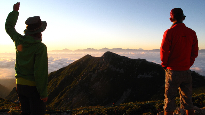 連休前というのもあるのかもしれないけど、中岳から日の出を見る人があまりいなくてヨカッタ
