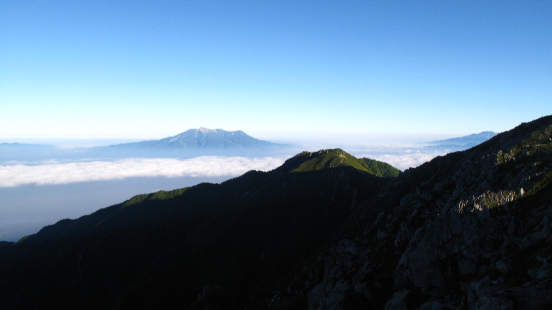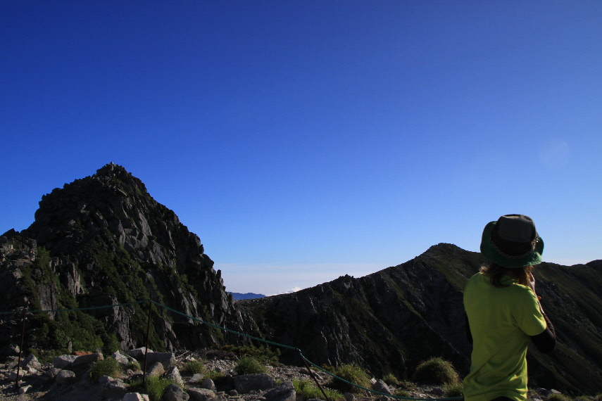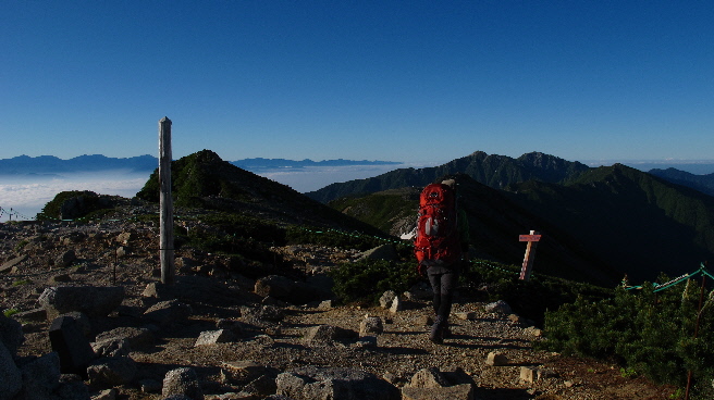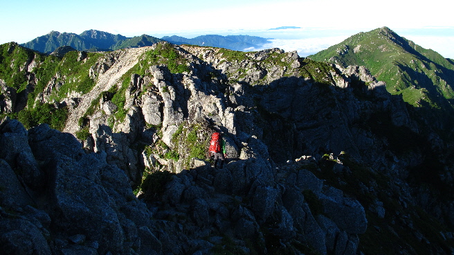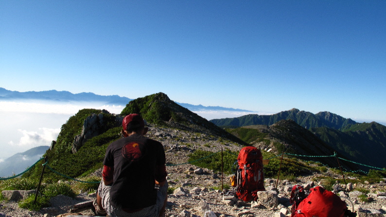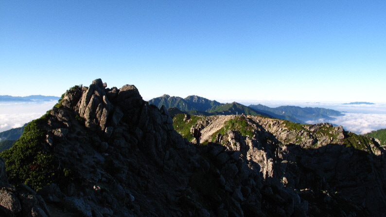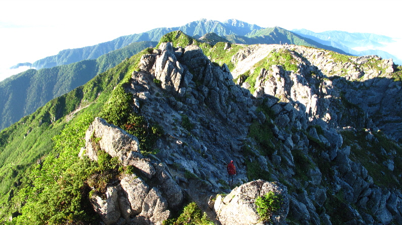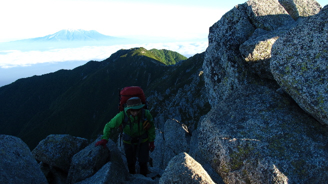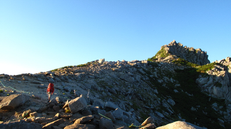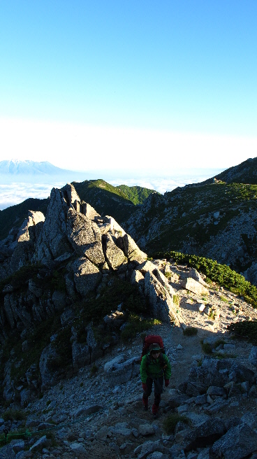 日の出を見た後は、宝剣岳へ再び登り、三ノ沢岳へピストンで行って(?)