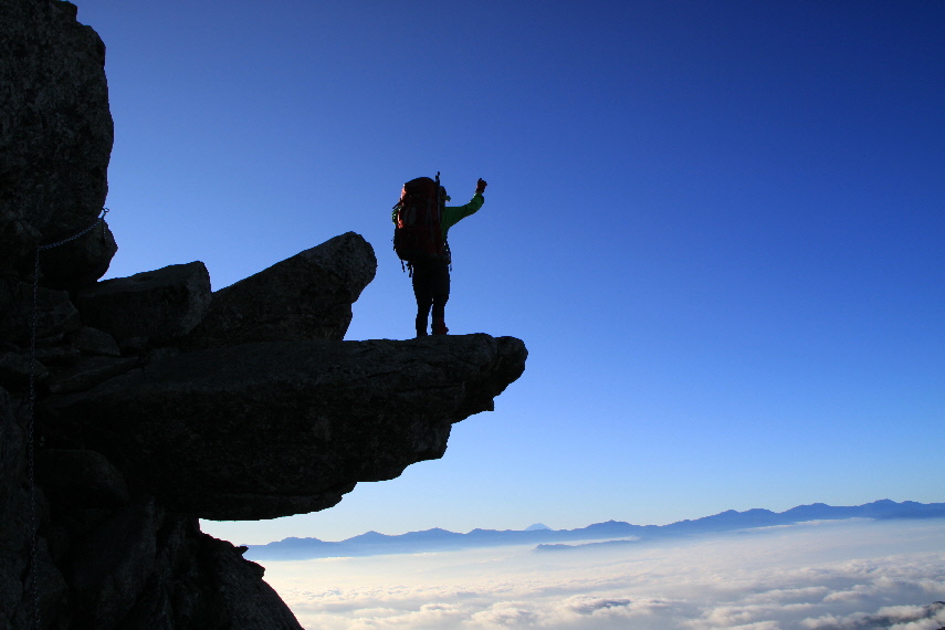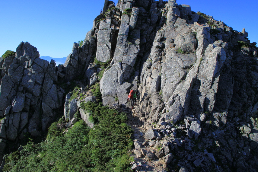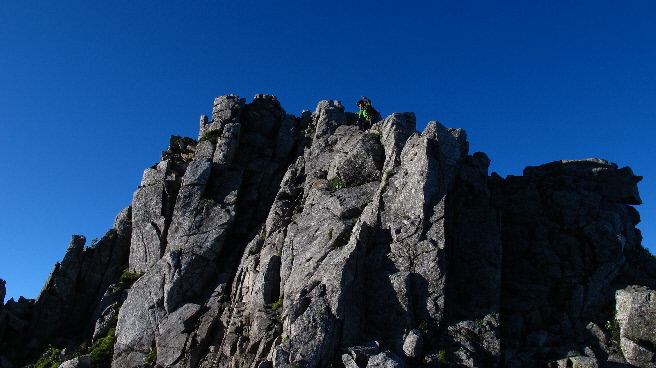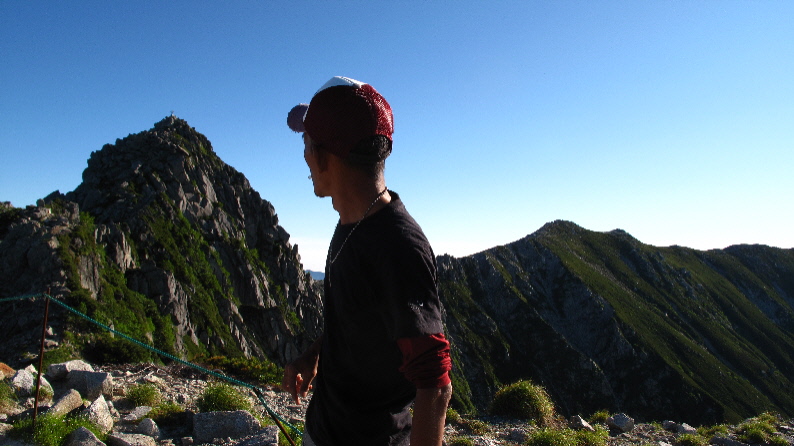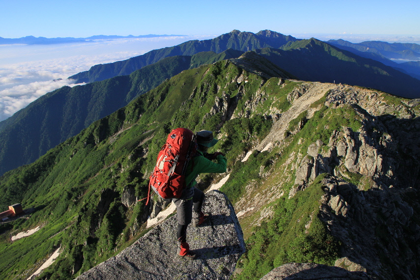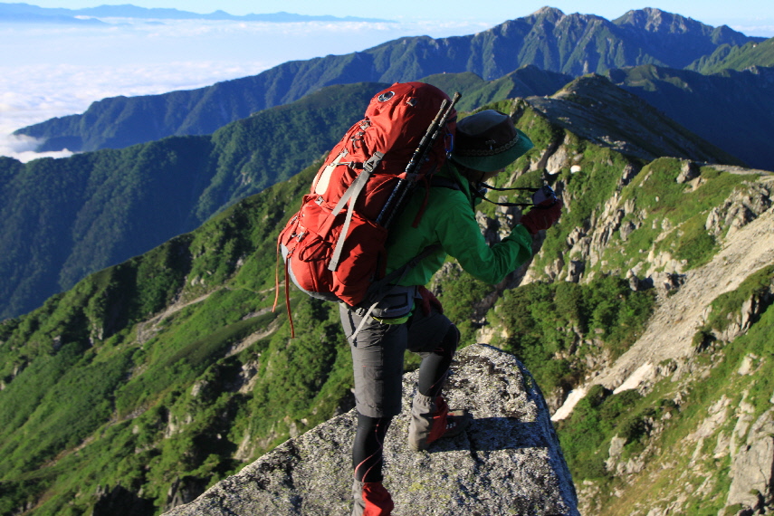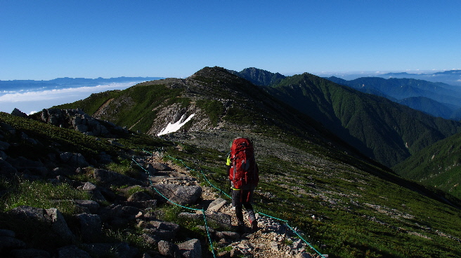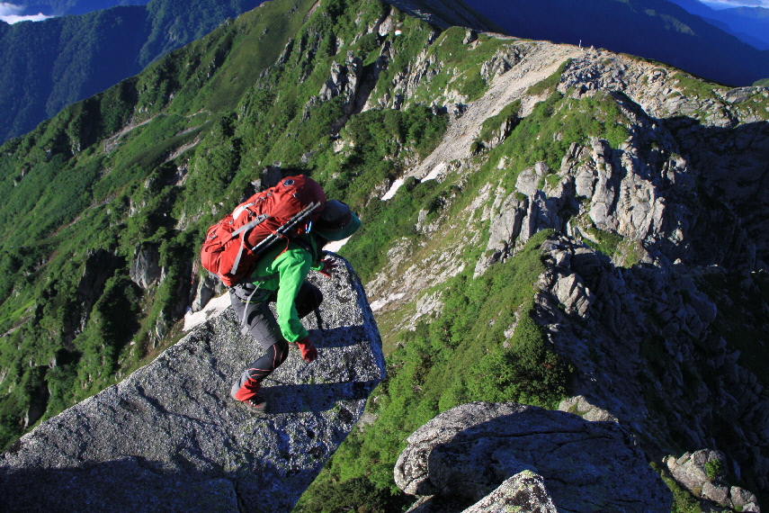 日の出を見た後は、宝剣岳へ再び登り、三ノ沢岳へピストンで行って(?)