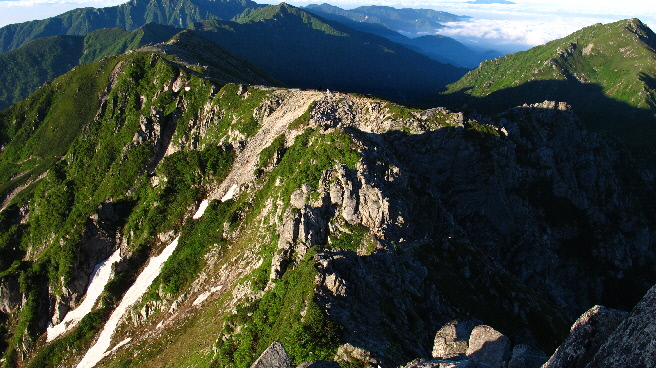 宝剣岳から眺める空木岳へ向かう稜線はやっぱりイイですね!三ノ沢岳もキレイ