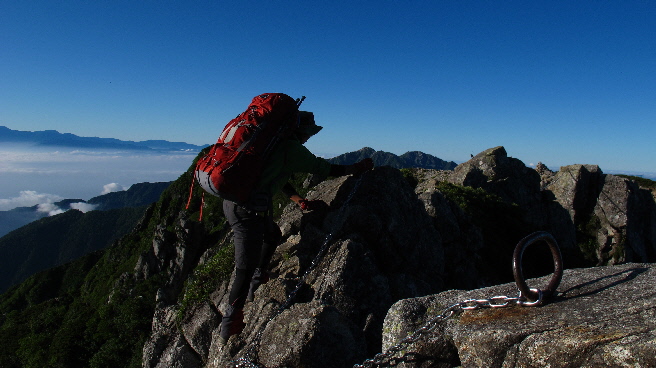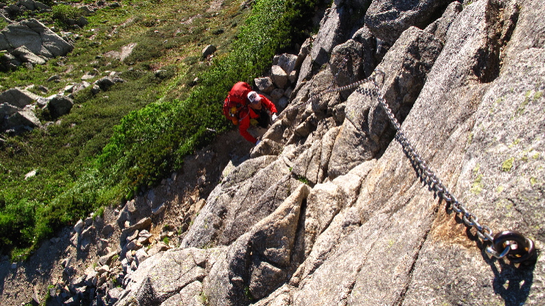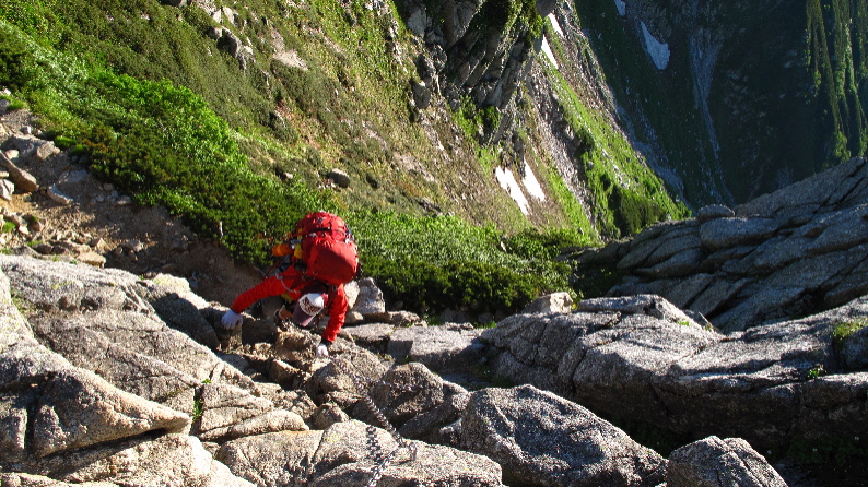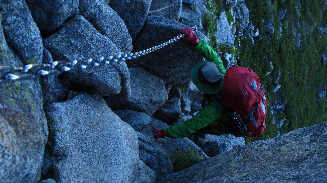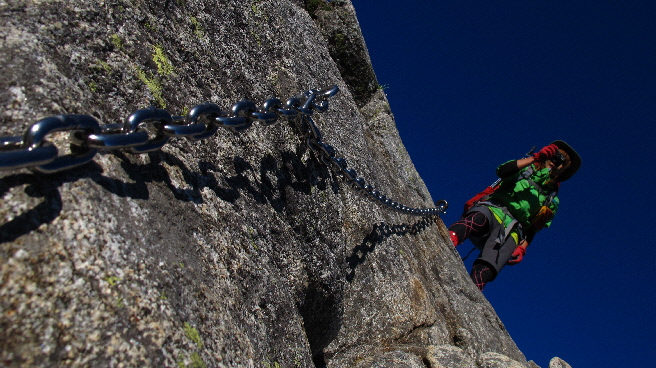 シッカリした鎖もあり、見た目よりも登りやすいです 登りだからかな?