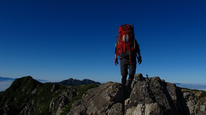 昨日と違うのは、少々無駄に大き目のザック(キャンプ用のシュラフ収納)を