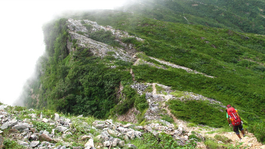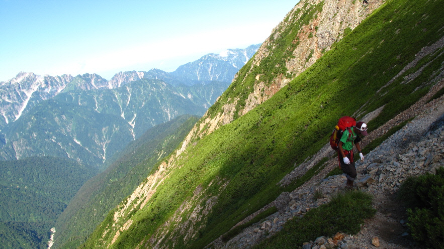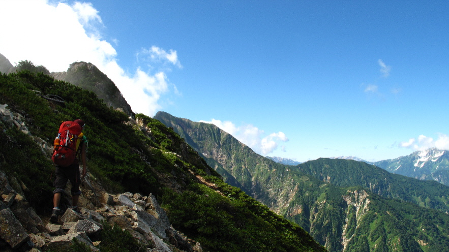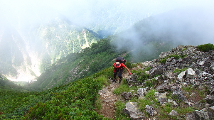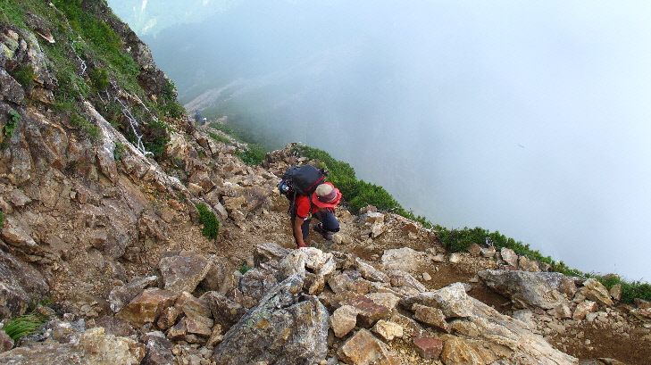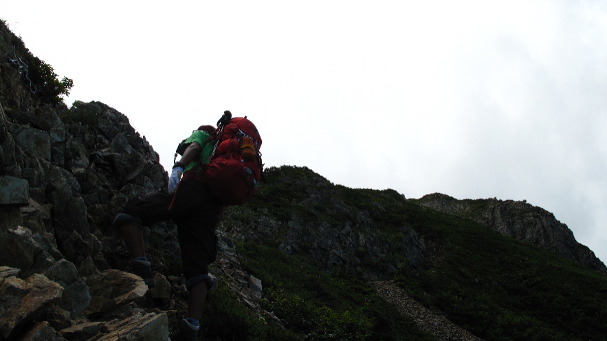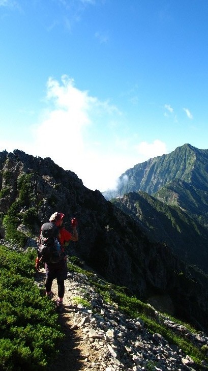 ここから先~八峰キレットを歩いて鹿島槍の山頂に行くまでは登りが中心で