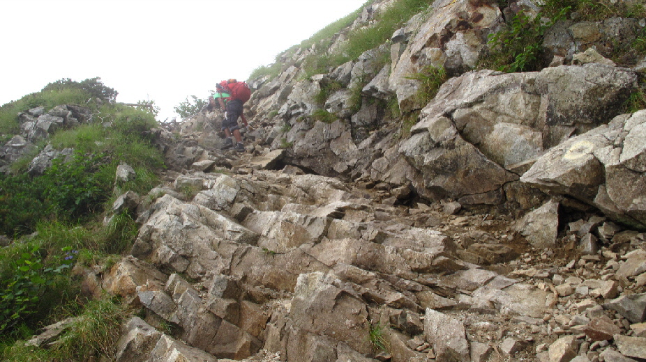 間に合うかな~ここを登り切った先に冷池山荘のテン場がありました