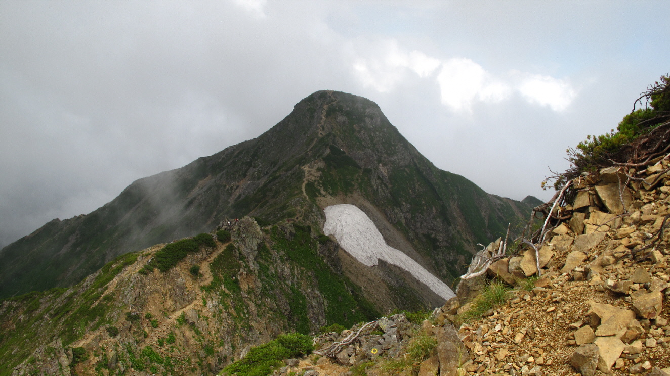 すると、ガスが取れて鹿島槍北峰が顔を出しました