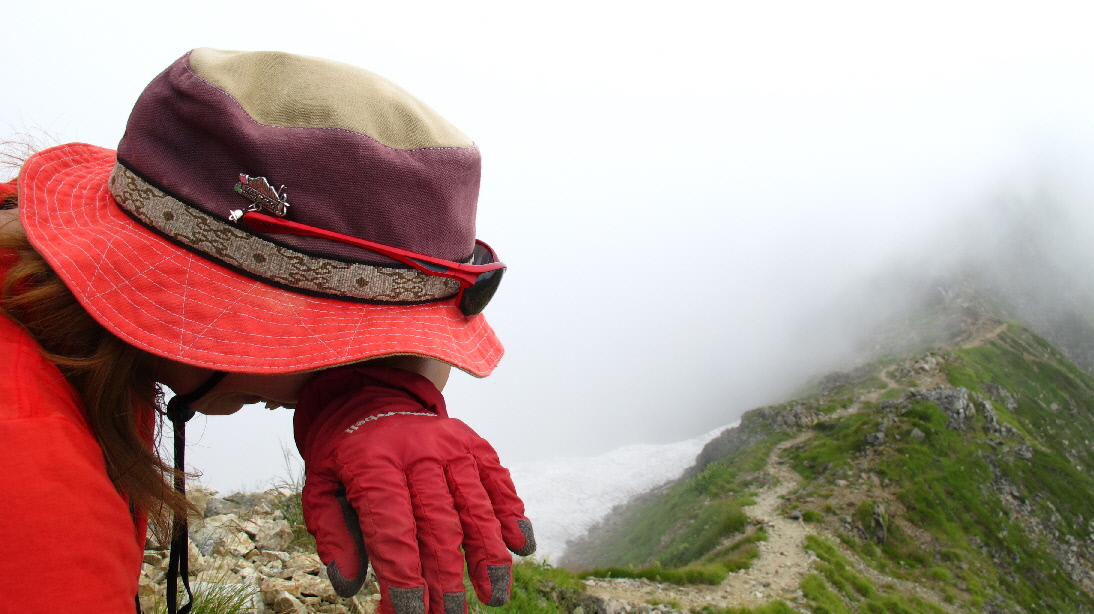 鼻水垂らしながら、鹿島槍北峰山頂へ向かいます