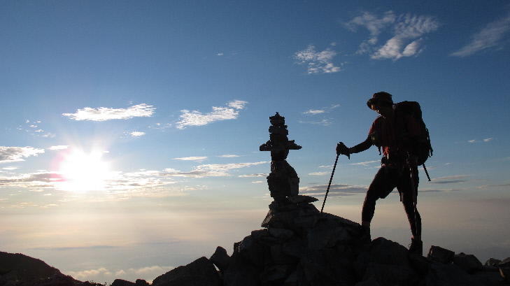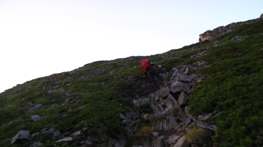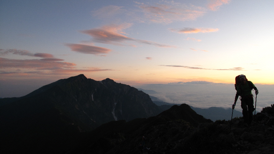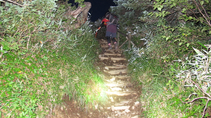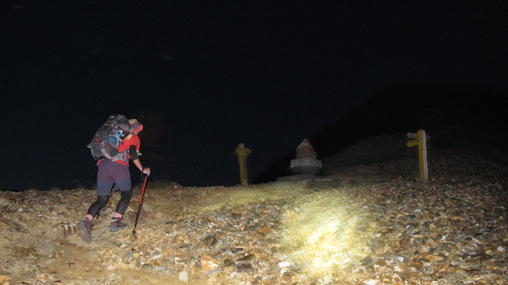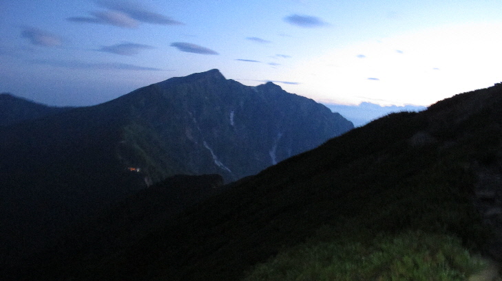 この縦走最後の山・・・爺ヶ岳から朝日を眺める為に出発します