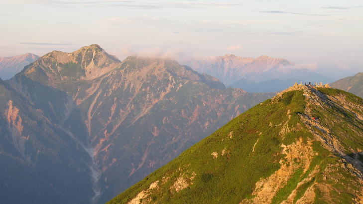 奥に見える爺南峰(?)の方には、人が多くいるのが見えます
