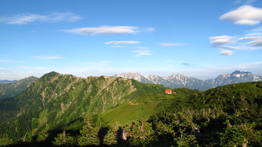 振返ると冷池山荘と鹿島槍も良く見えてきました
