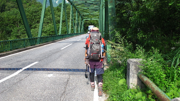 橋を渡ります 大きいバスや車が良く通るから、ちゃんと端っこ歩かないとね