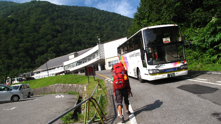 まずは、バスに乗って信濃大町駅に行くために扇沢まで歩きます