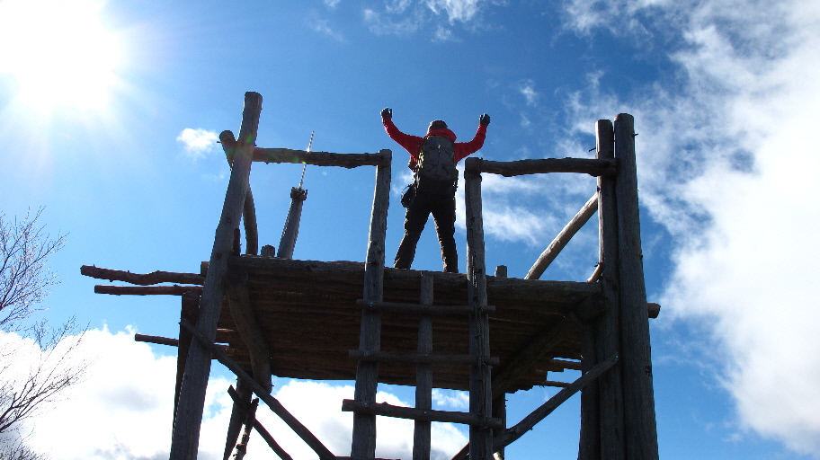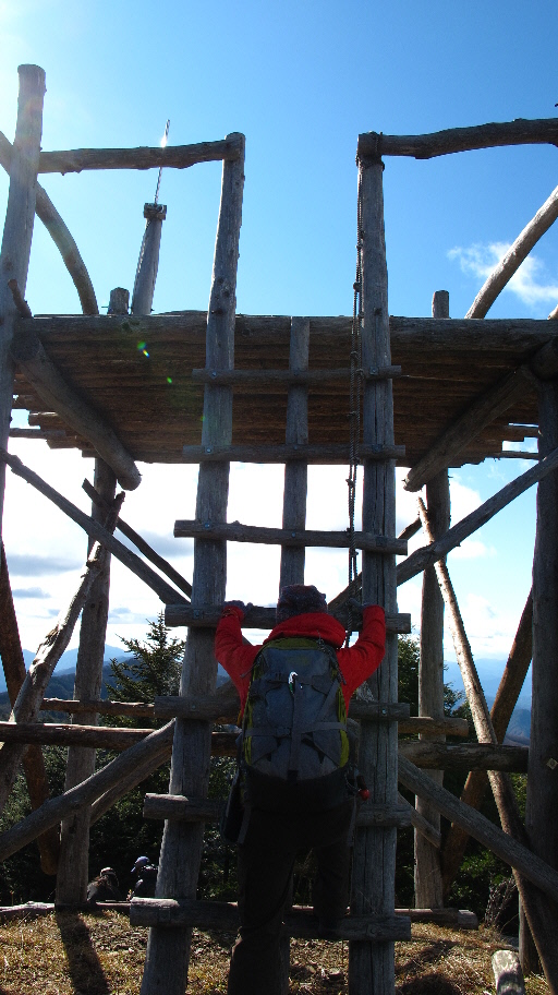 あとちょっとです見えてきました!山頂にあるあの木の展望台が