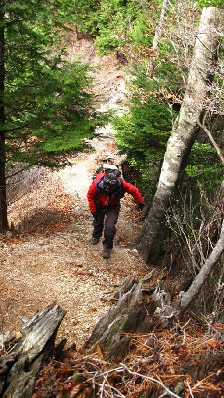 まっすぐな山道 登り始めていきなり急登だし・・・