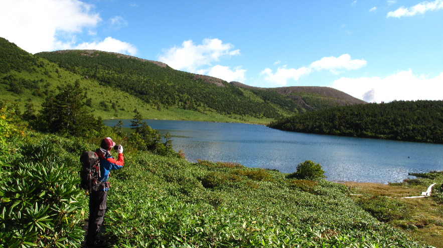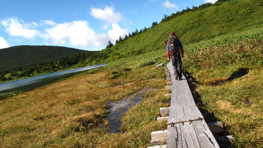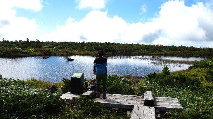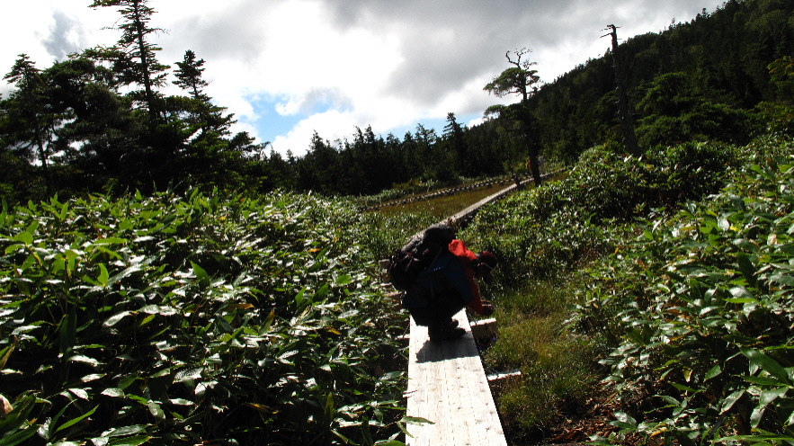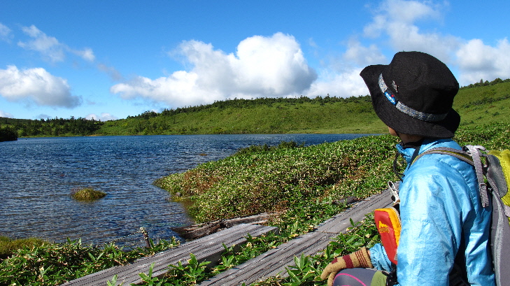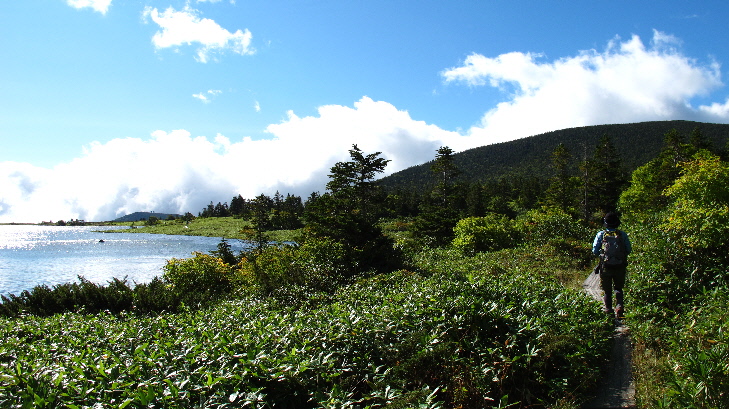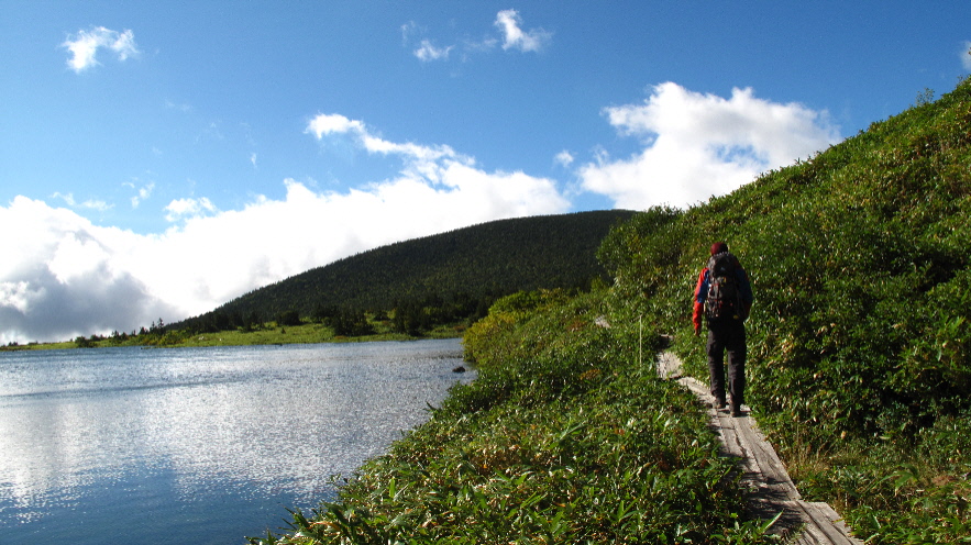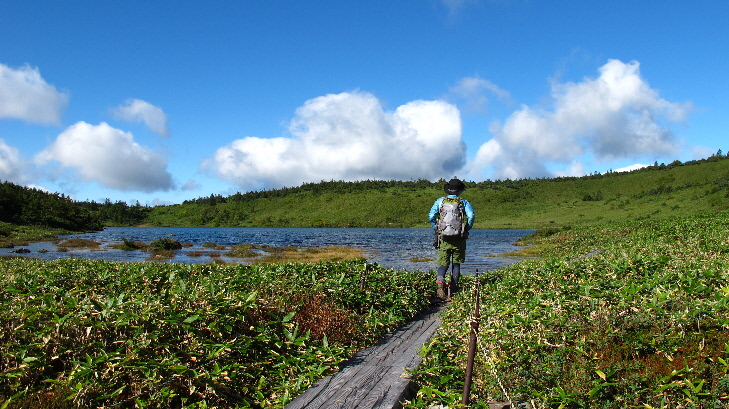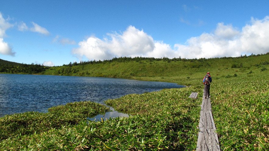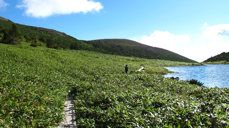分岐まで戻り、今度は酸ヶ平(スガダイラ)を歩いて鎌沼を眺めながら