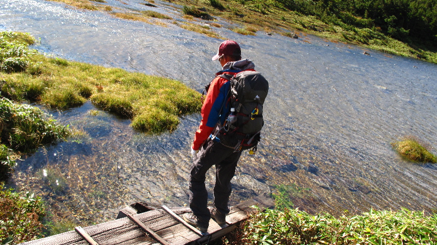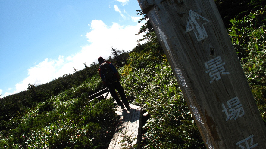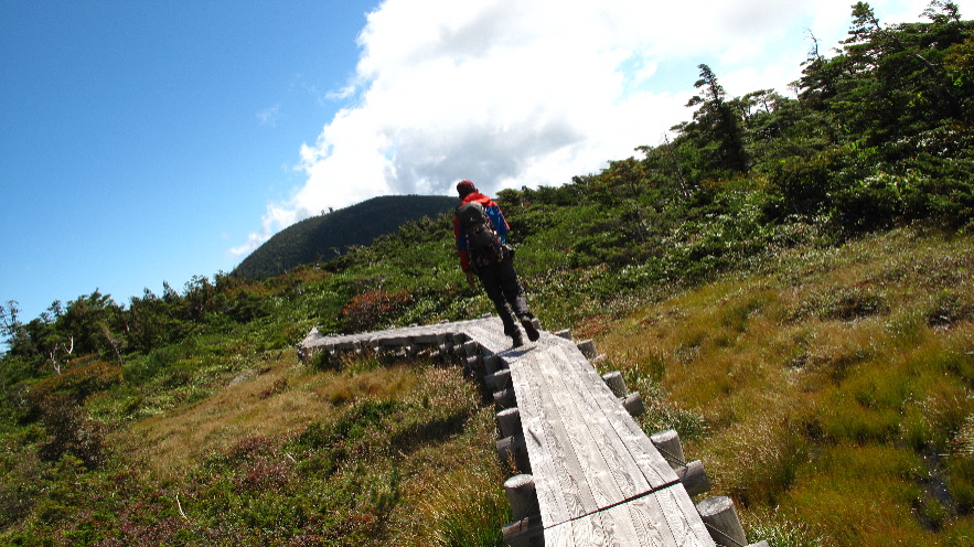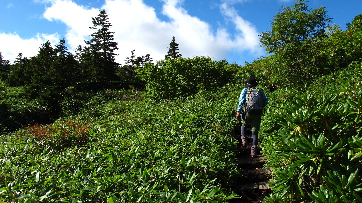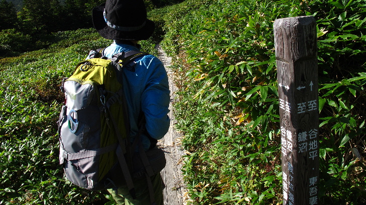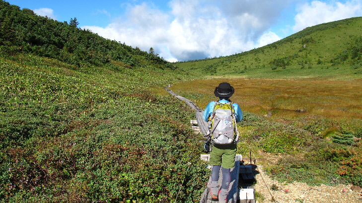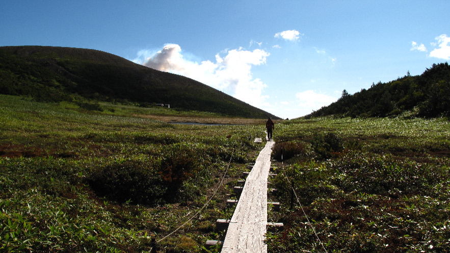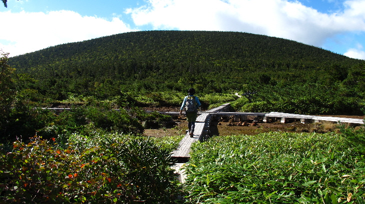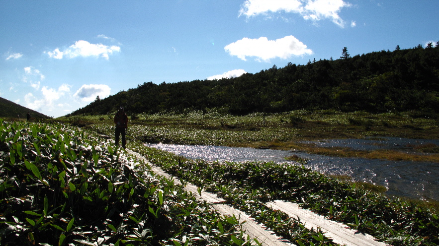 分岐まで戻り、今度は酸ヶ平(スガダイラ)を歩いて鎌沼を眺めながら
