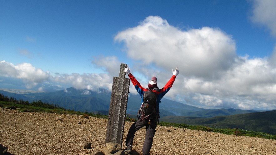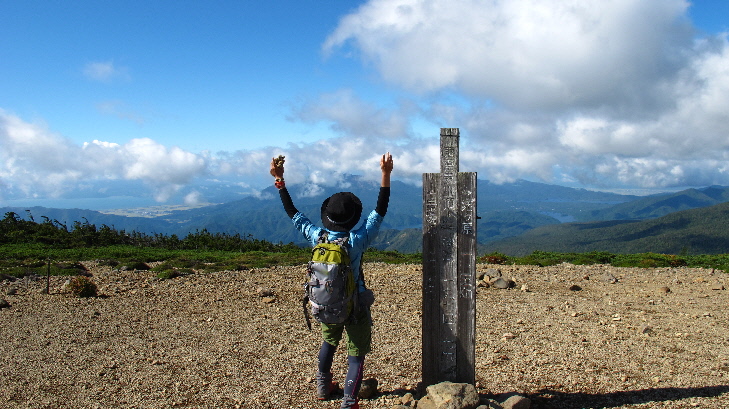 東吾妻山の山頂到着 一切経よりは風がなくて心地よいです