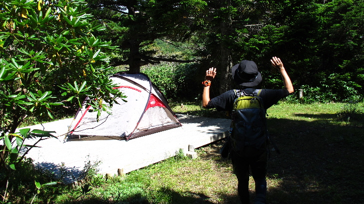 道路を渡って、兎平野営場まで歩きます あとちょっと!