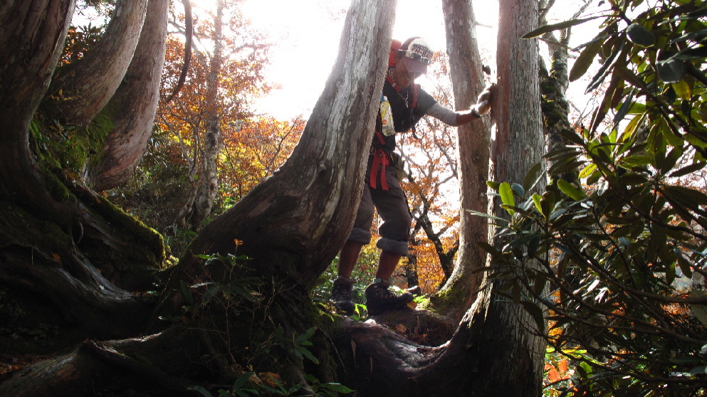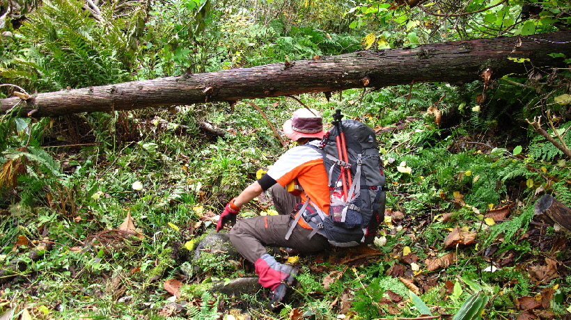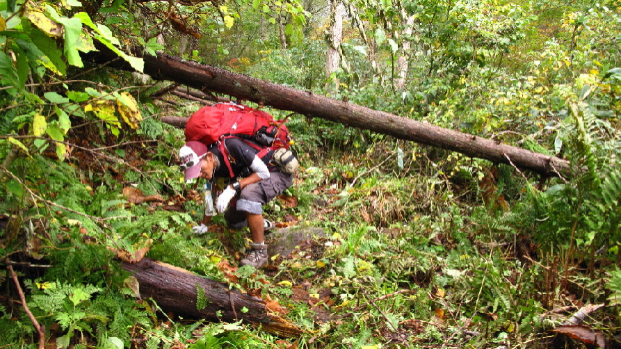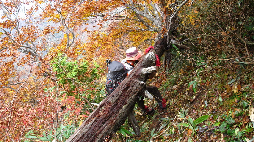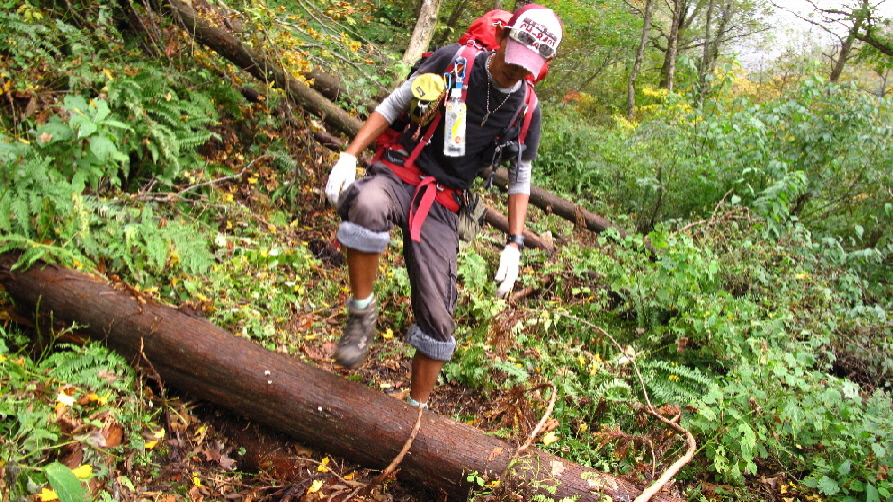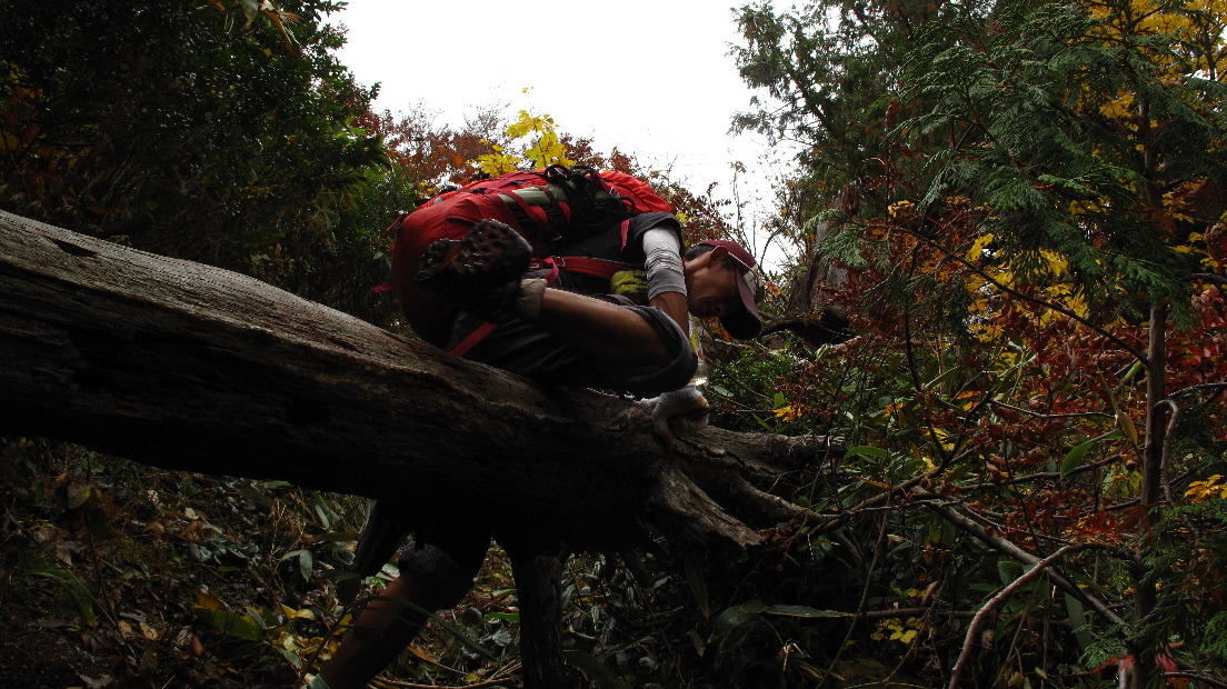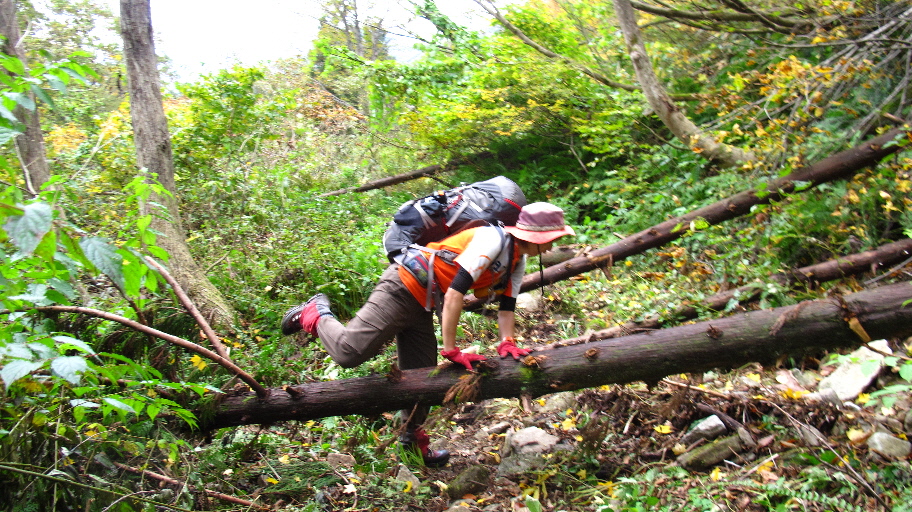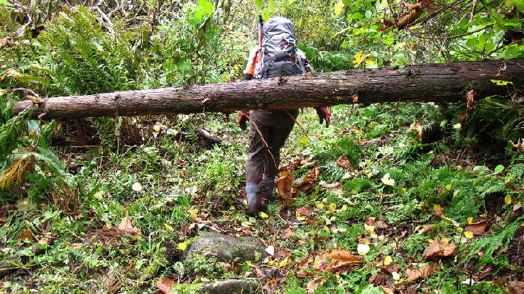 横たわってる木が多くあり、跨いだり~