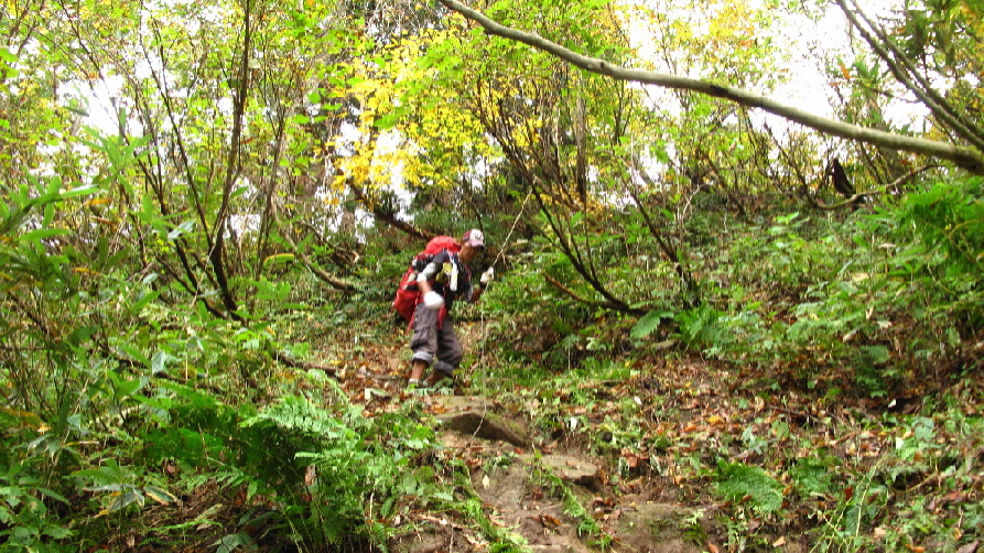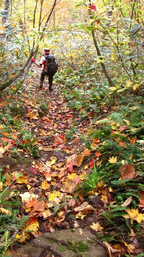 疲れても、下山道の紅葉はサイコーです