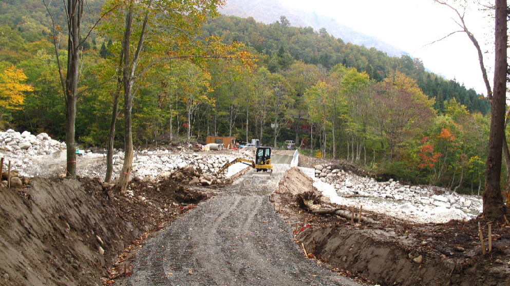 工事車両が通ります